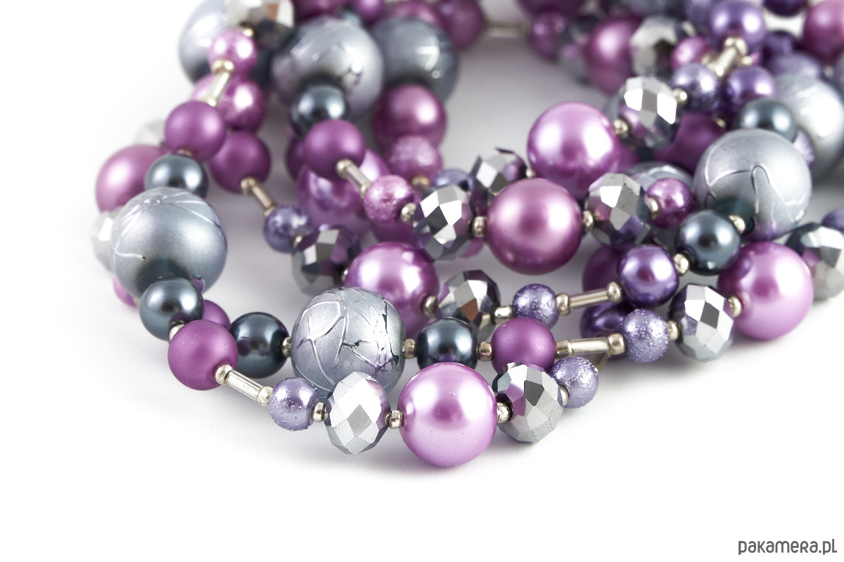 Korale wykonane z linki jubilerskiej, elementów posrebrzanych oraz dużej ilości szklanych koralików, perełek i kryształków. Obwód korali to ok 145cm! Posiada zapięcie.
