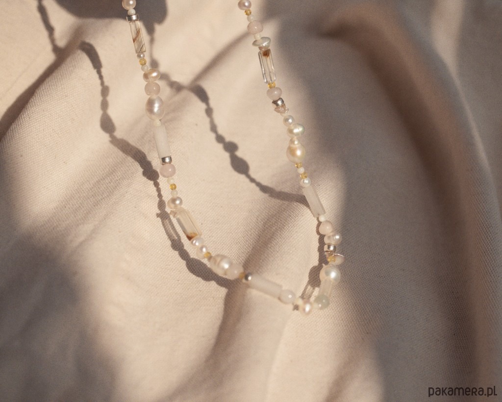 - Materiał: perła hodowana/keshi, muszla, awenturyn, morganit, kwarc tygrysi, opal, srebro 925