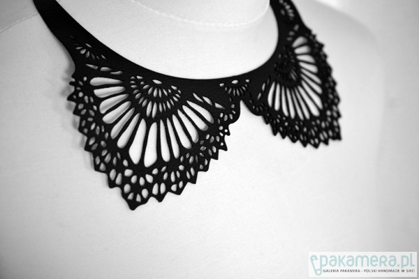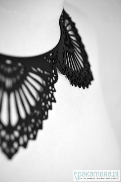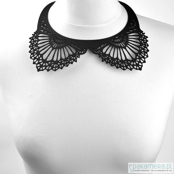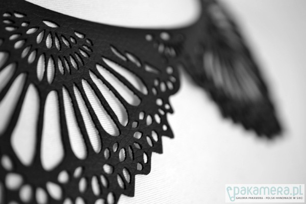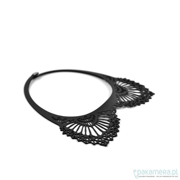 czarny naszyjnik ze skóry ekologicznej - model: BlackEcoNecklace 2 - kolekcja: putMeOn - zapięcie: nap - kolor: czarny - materiał: eco skóra od spodu podklejony fizeliną - wzór: wycinany laserowo