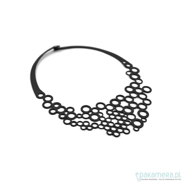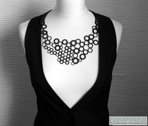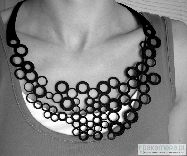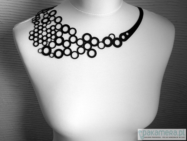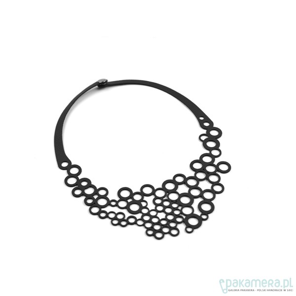 czarny naszyjnik ze skóry ekologicznej - model: BlackEcoNecklace 4 - zapięcie: nap - kolor: czarny - materiał: eco skóra od spodu podklejony fizeliną - wzór: wycinany laserowo