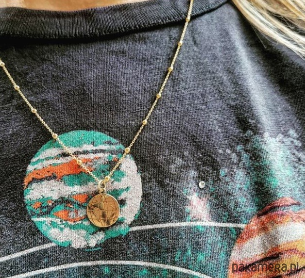 Modny ręcznie wykonany naszyjnik z kuleczkami długość 50cm i mapą świata.