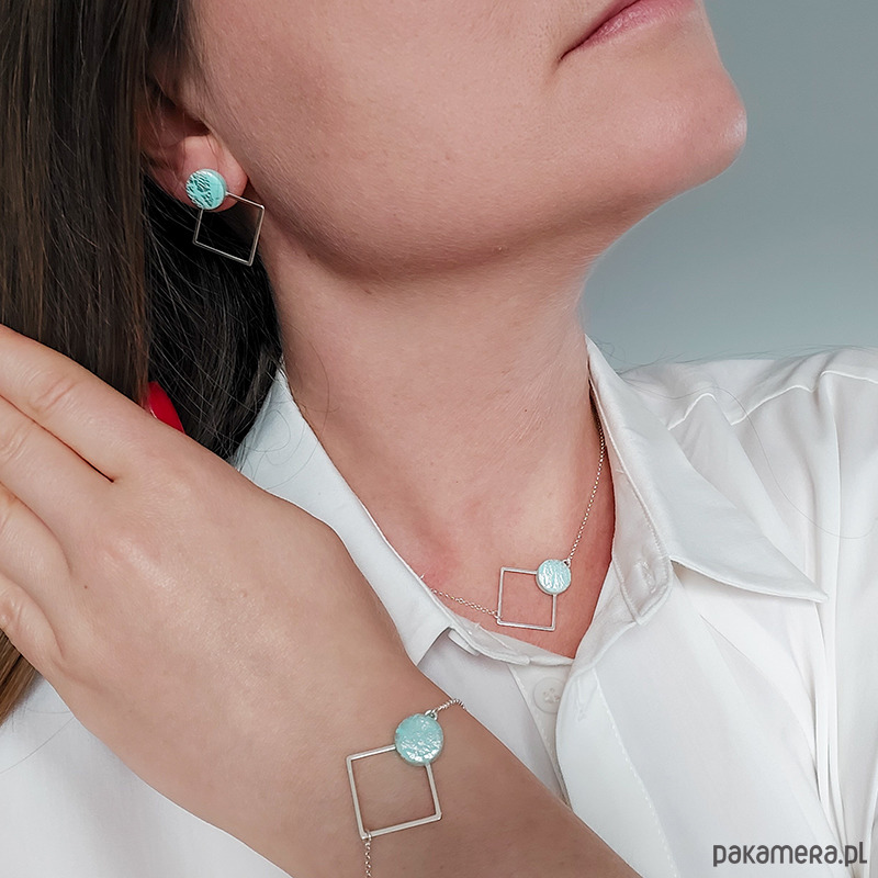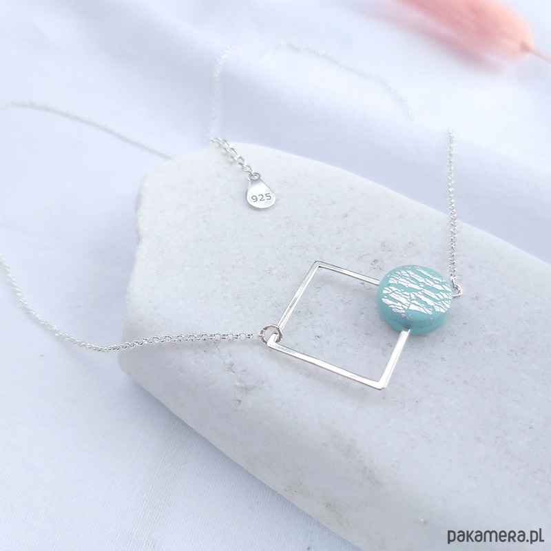 Celebrytka wykonana ze srebra próby 925 oraz glinki polimerowej.