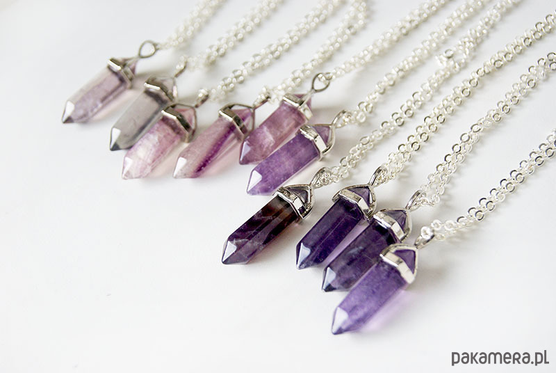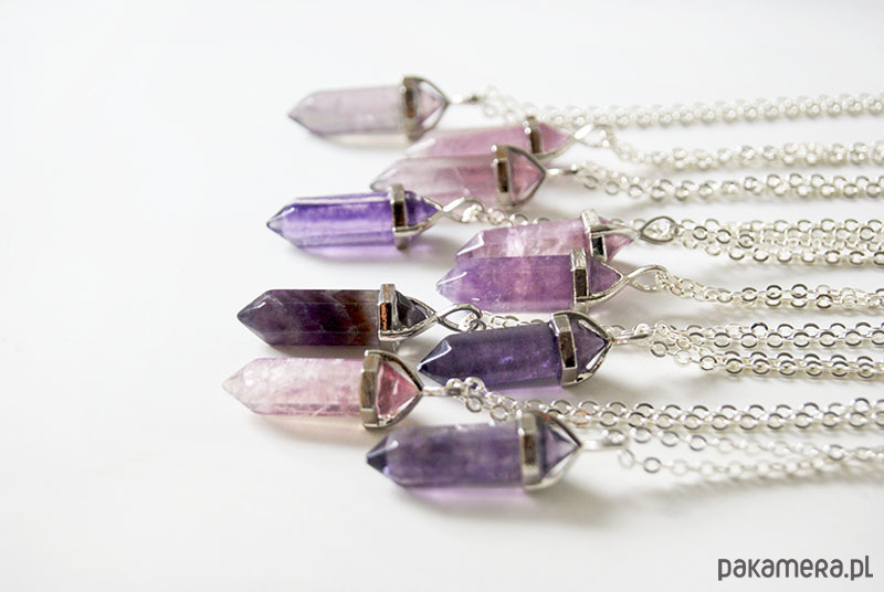 Kamienie różnią się między sobą zabarwieniem i wewnętrznymi strukturami. W nowej dostawie znajdują się kamienie i mocno wysycone kolorem fioletowym i prawie przeźroczyste. Wysyłane są losowo. W przypadku konkretnych preferencji, prosimy o kontakt.