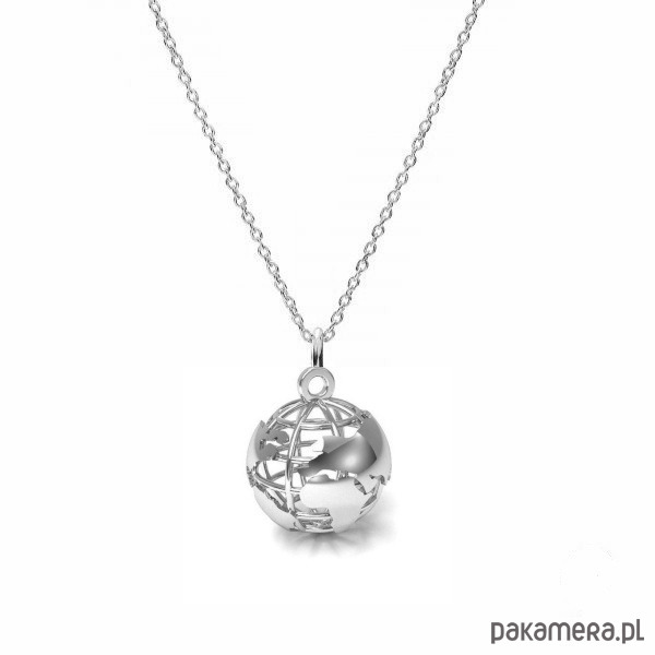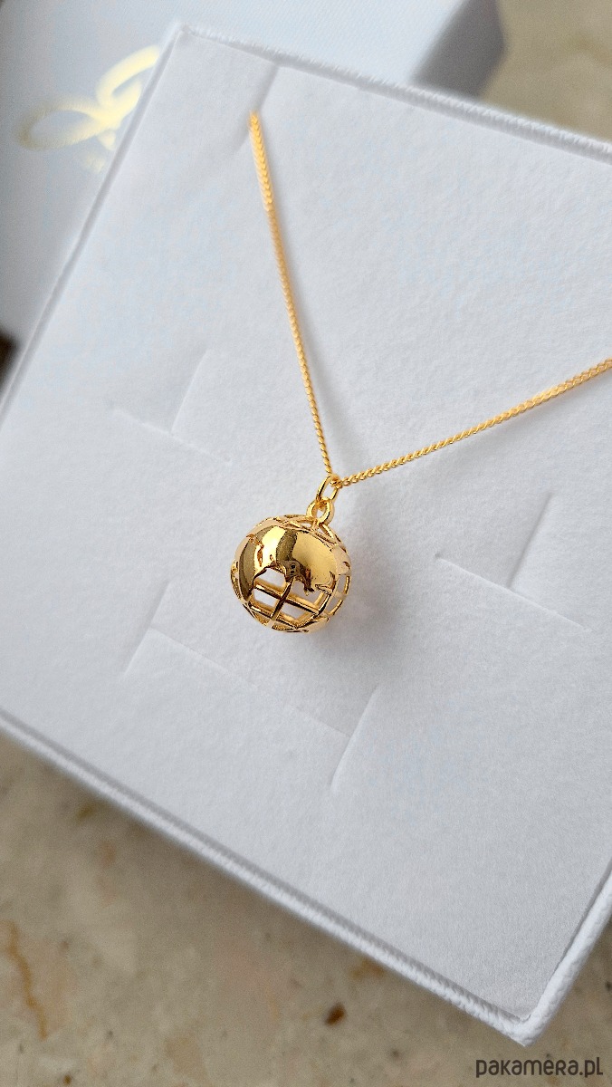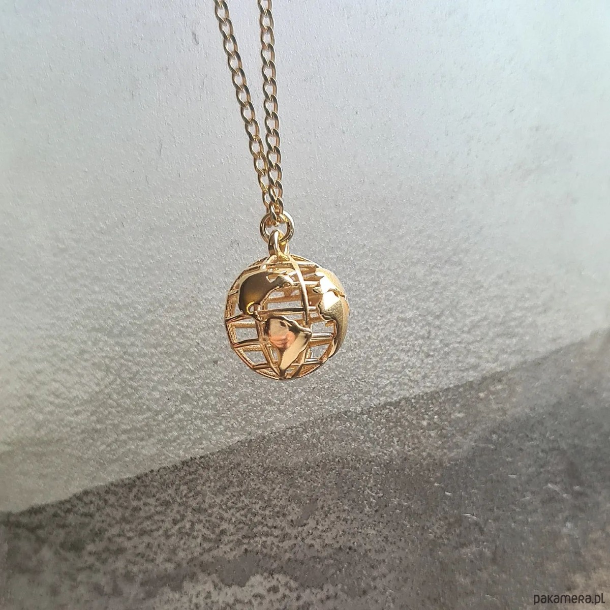 Naszyjnik z zawieszką w kształcie kuli ziemskiej.