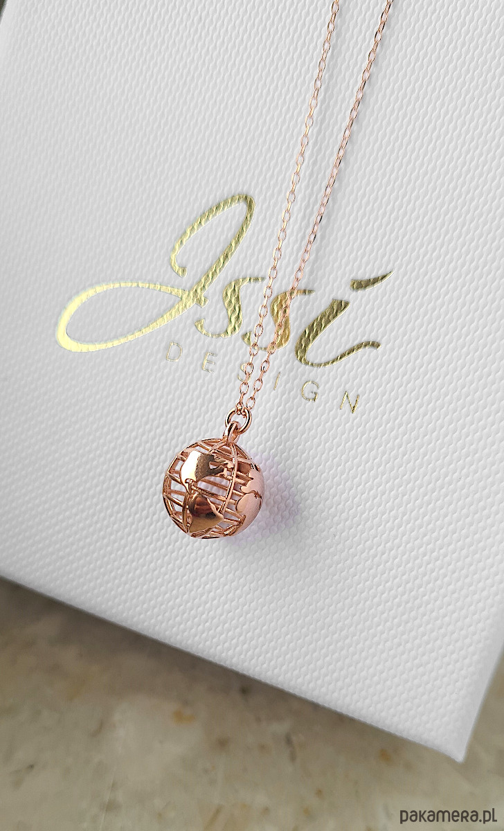 Naszyjnik z zawieszką w kształcie kuli ziemskiej.