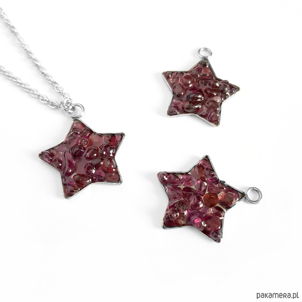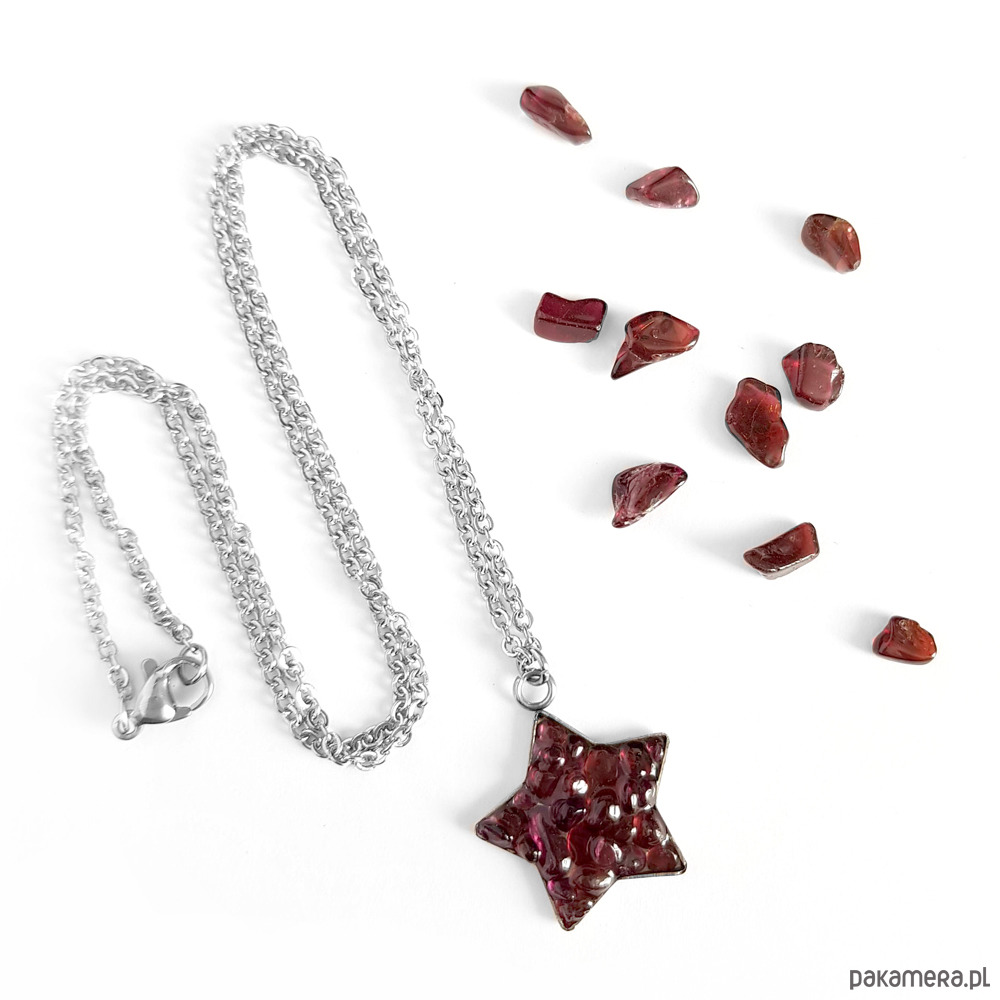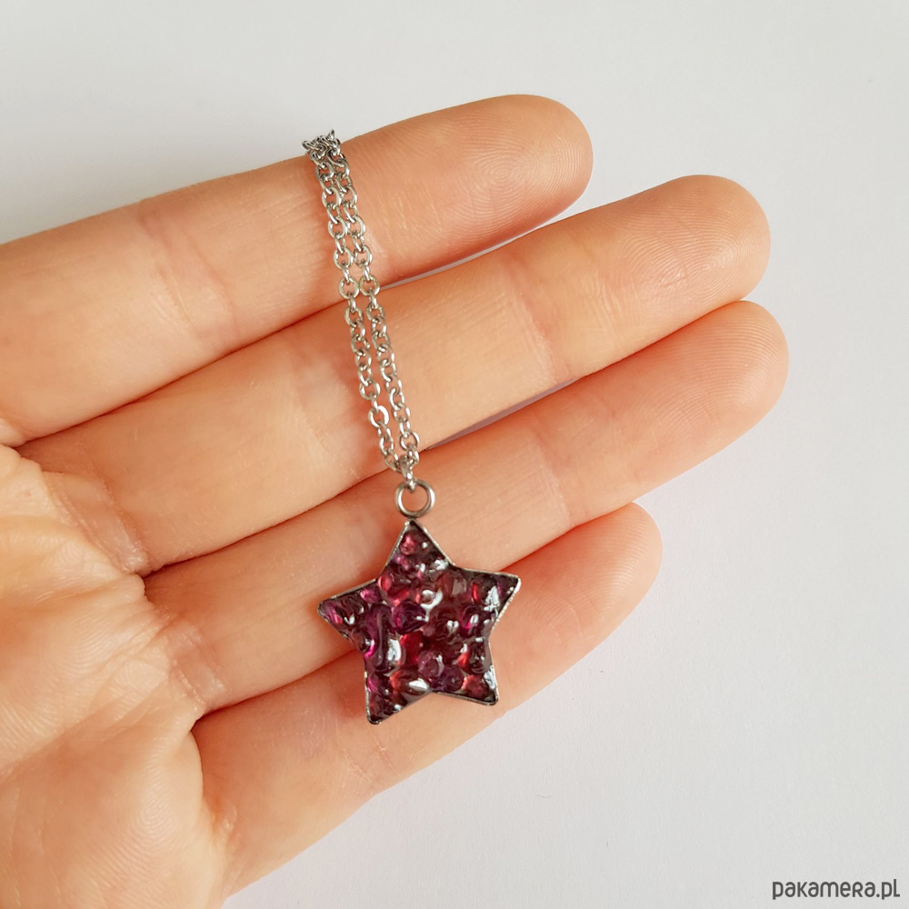 Granat gwiazdka naszyjnik stal chirurgiczna