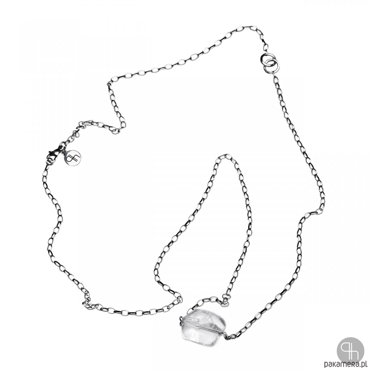 Efektowny naszyjnik w całości wykonany ze stali chirurgicznej o długości ok 70cm. Jest to materiał bardzo wytrzymały, nie zmienia barwy, nie rdzewieje, nie uczula. Wielkość oczek łańcuszka 2,6 - 3,6mm. Dwa złączone kółeczka o średnicy 0,8cm. Kamień naturalny - kryształ górski. Każdy naszyjnik jest unikatowy ponieważ bryły sa nieregularne i mają niepowtarzalny kształt (zdjęcie jest poglądowe). Średni wymiar kamienia to 2 cm x 1,5 cm. Blaszka z logo ph. Opakowanie - elegancki woreczek z czarnej organzy.