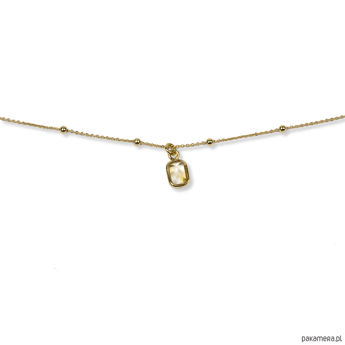 Cytryn w okuciu na srebrnym (925), pozłacanym 24- karatowym złotem łańcuszku z kulkami.