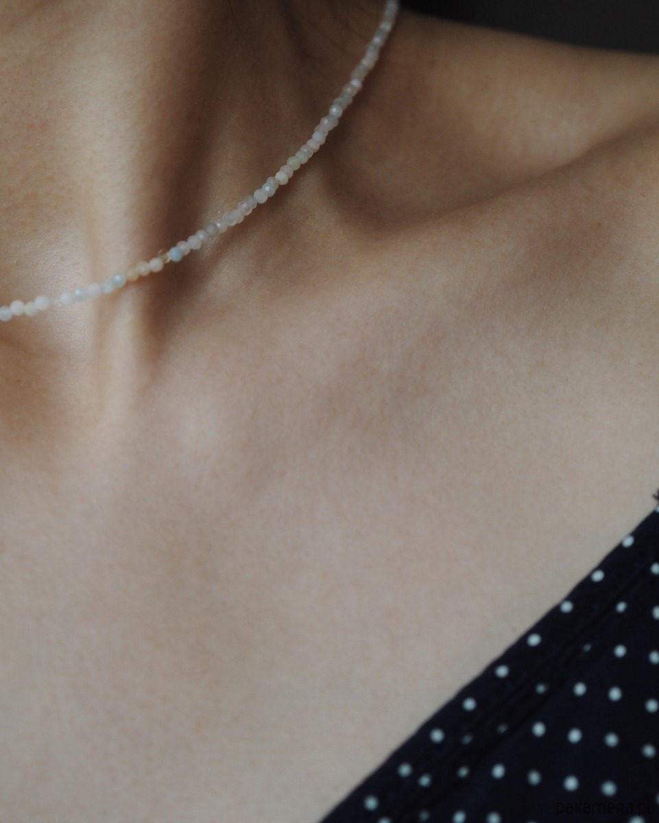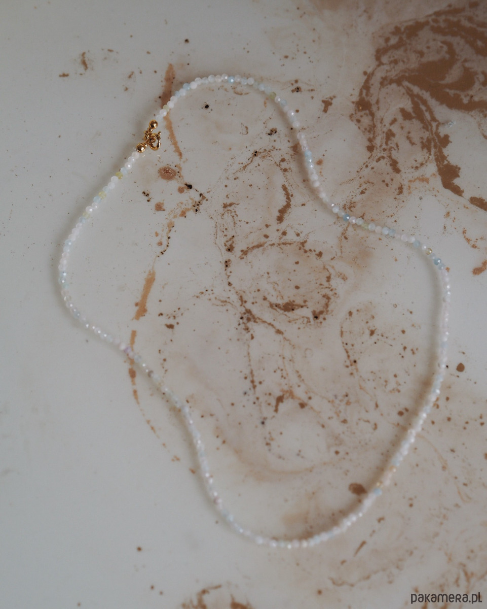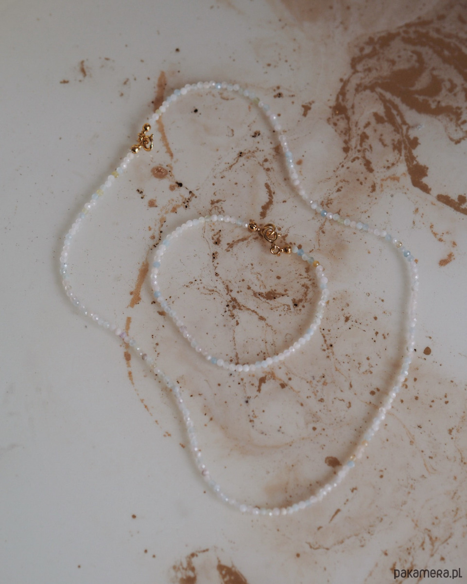 – naszyjnik został wykonany z drobnych morganitów w kształcie kuli fasetowanej