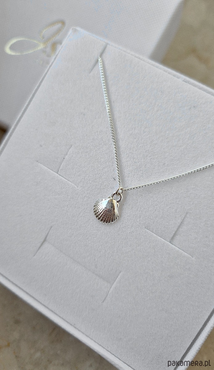Naszyjnik z zawieszką w kształcie muszelki.