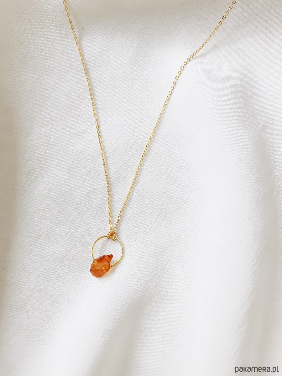 Naszyjnik wykonany z pozłacanego srebra próby 0,925 i bursztynu.