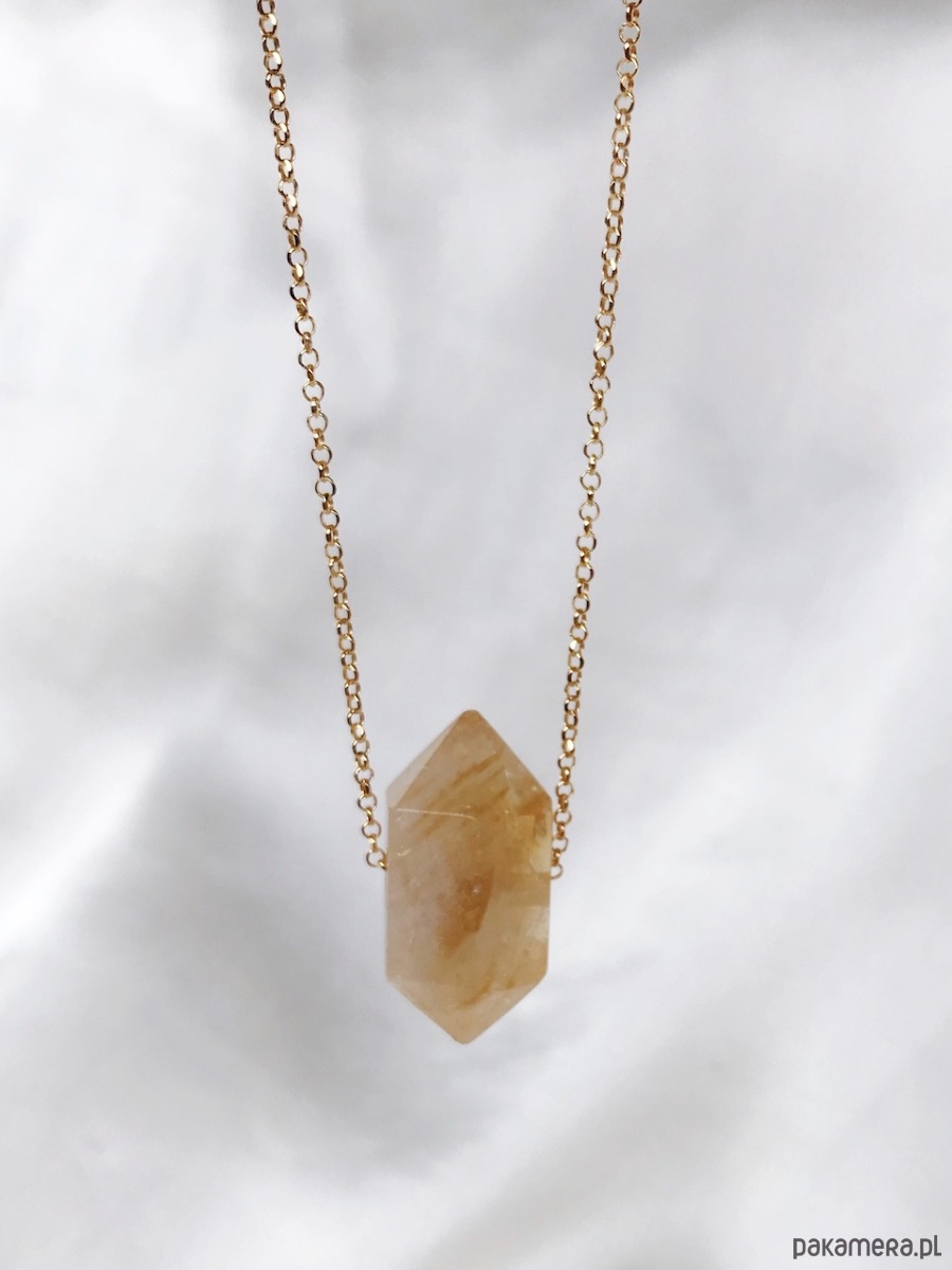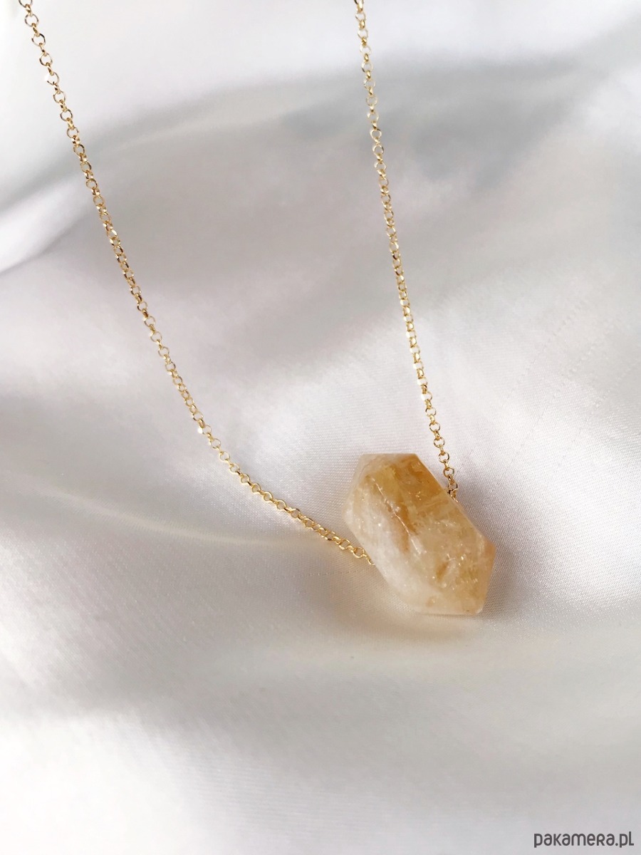 Pozłacany naszyjnik z cytrynem o nieregularnym, unikatowym kształcie.