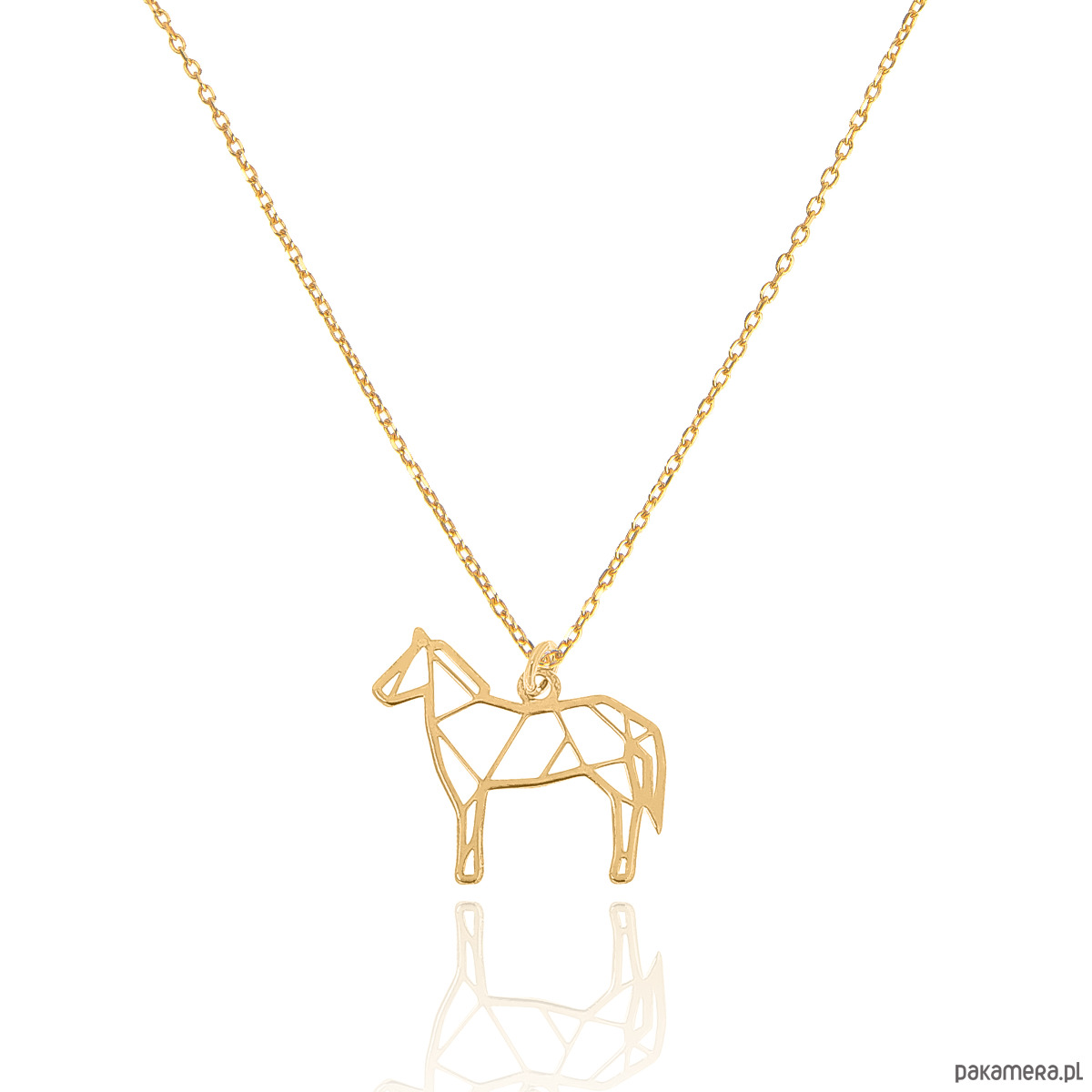 Naszyjnik srebrny pozłacany z koniem origami. Całość wykonana ze srebra 925 pokrytego 24 karatowym żółtym złotem.