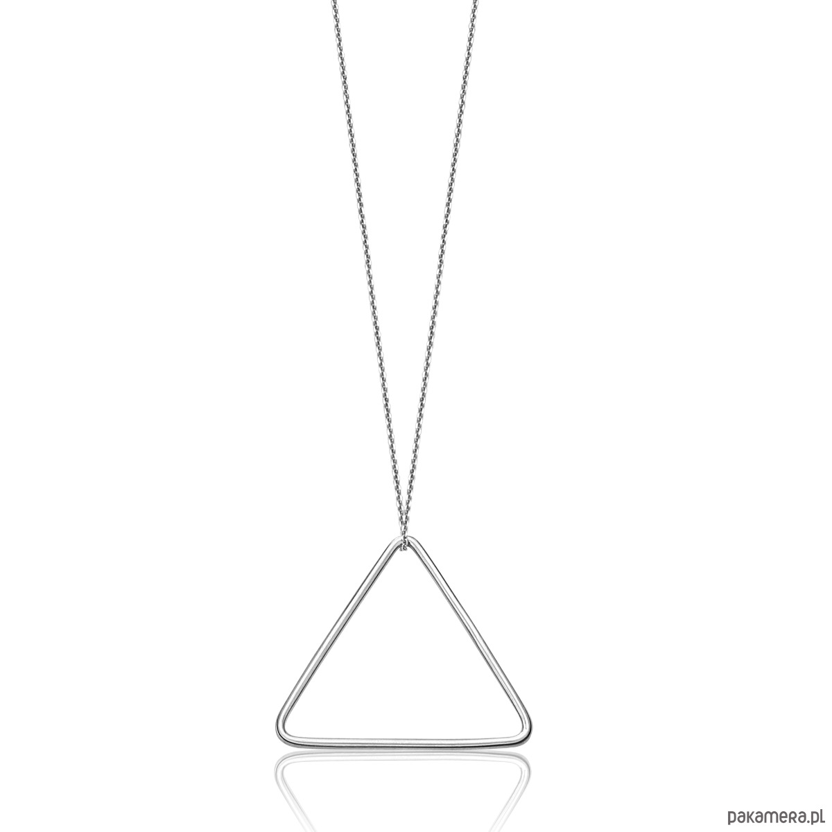 Minimalistyczny naszyjnik z zawieszką „trójkąt” wykonany z rodowanego srebra próby 925. Wysokość zawieszki 40mm, długość naszyjnika 40cm + 5cm regulacji. Naszyjnik sygnowany dwustronnym imiennikiem La Tienne.