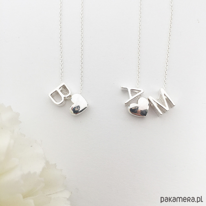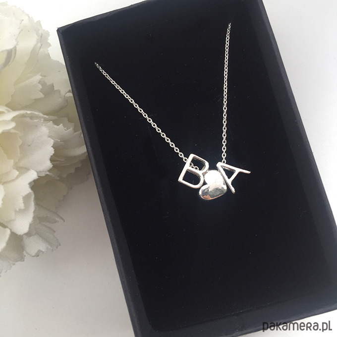 Naszyjnik jest wykonany z literek i serca lub etki.
