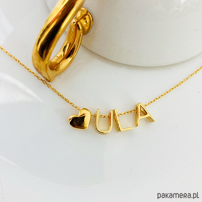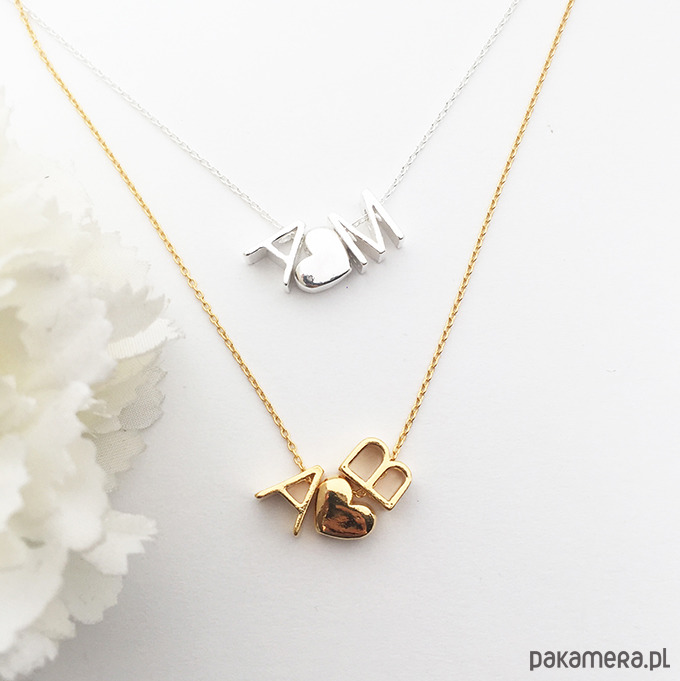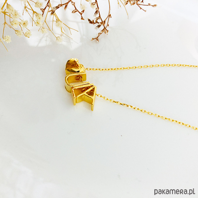 Oryginalny naszyjnik z literkami i sercem, prosty, ale efektowny jest wykonany ze srebra próby 925 i złocone 24 k złotem. Dostępny w srebrze 925.