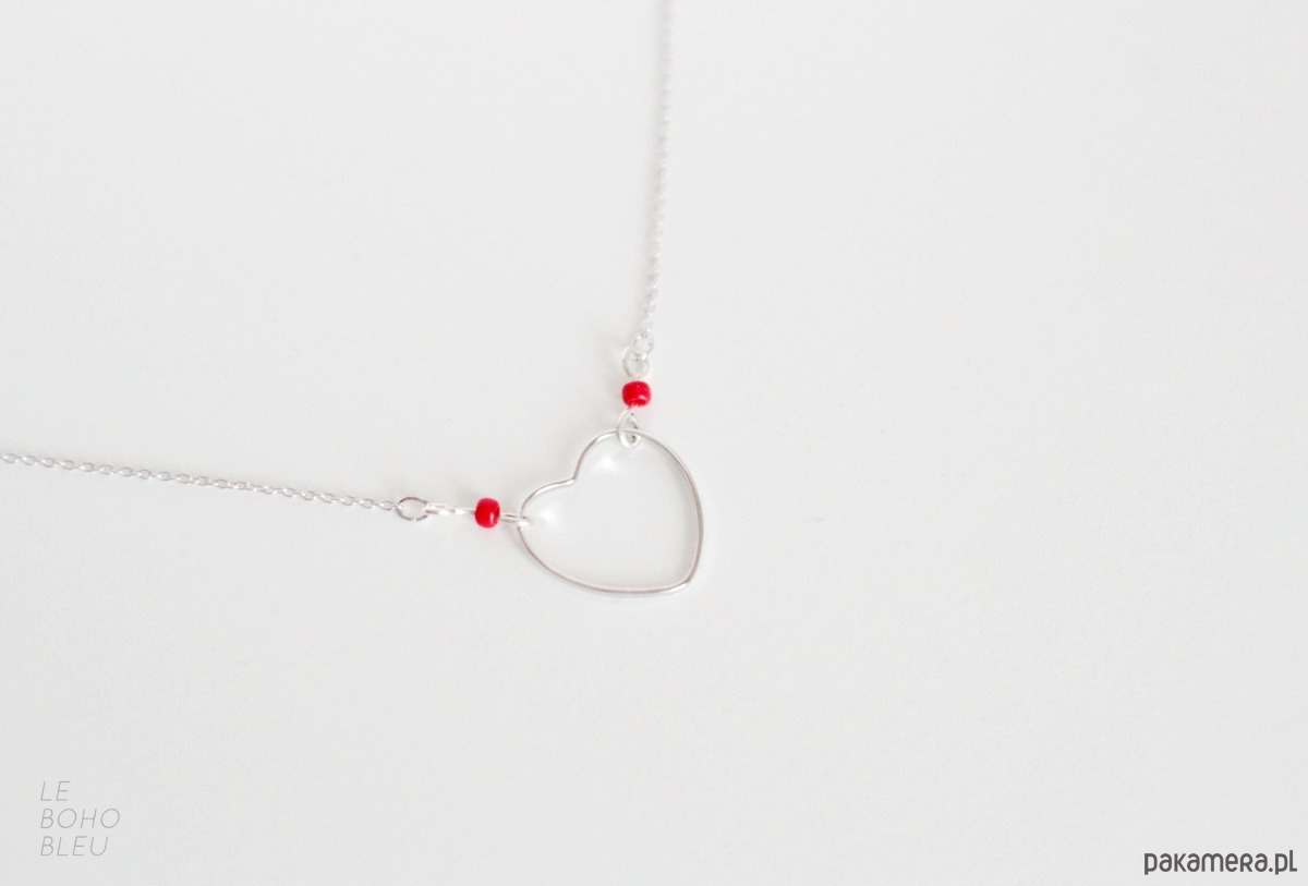 Mosiężna przekładka (18 mm) powlekana rodem, przyozdobiona dwoma koralikami w czerwonym kolorze. Pozostałe elementy wykonane z mosiądzu powlekanego rodem.