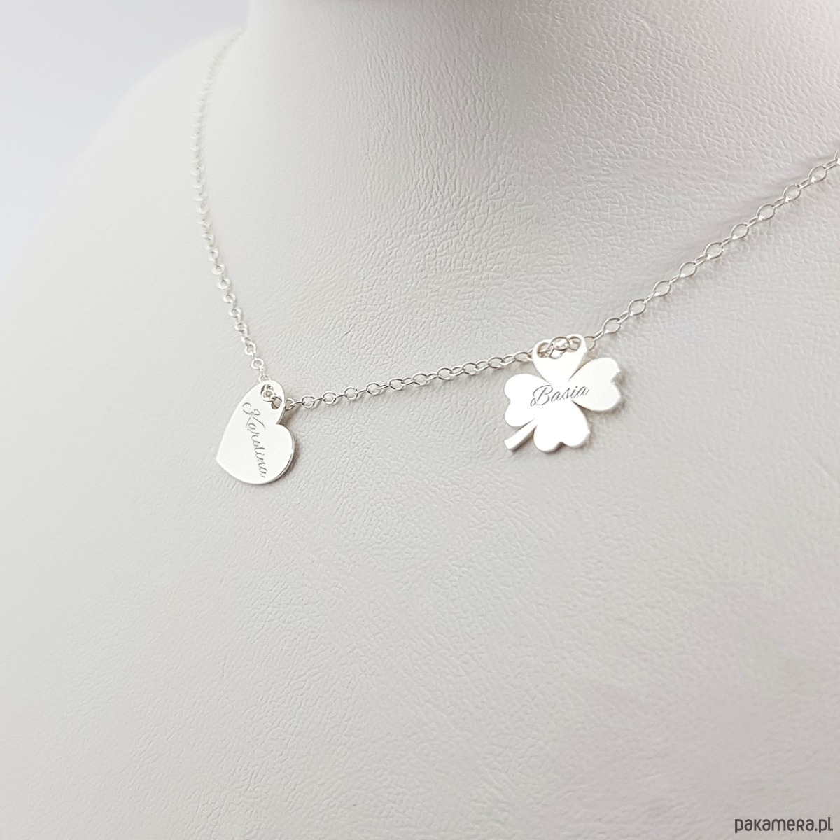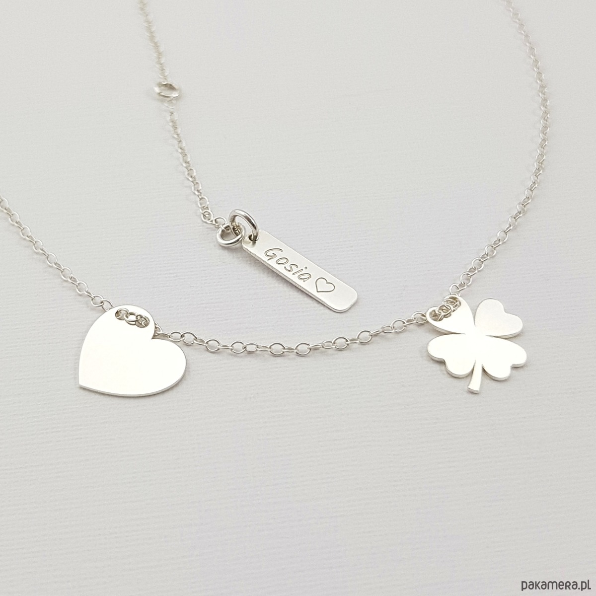 Srebrna celebrytka naszyjnik Serce i Koniczynka z grawerem