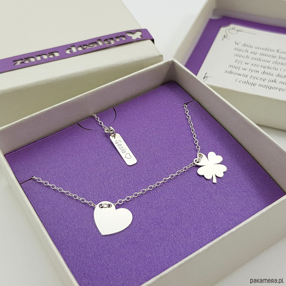 Dodaj informacje czy grawer ma być na blaszce czy na sercu i koniczynce lub na jednym i drugim.