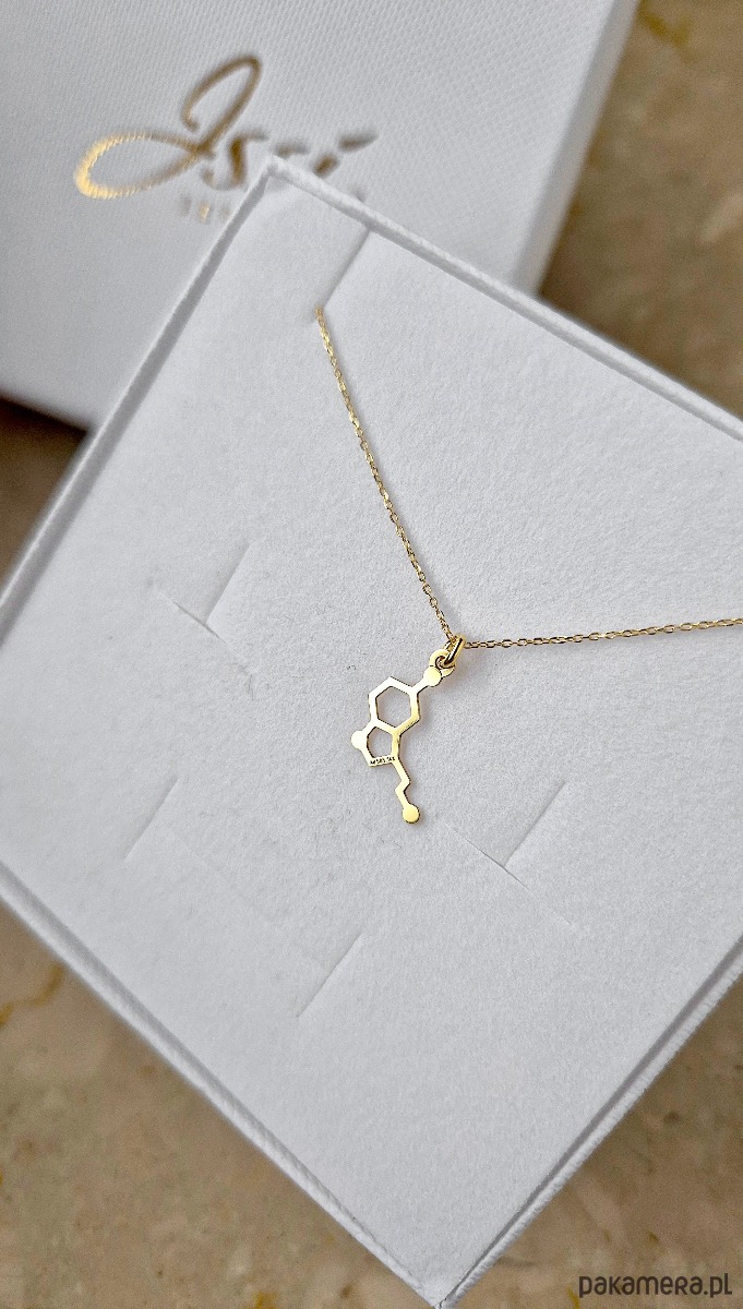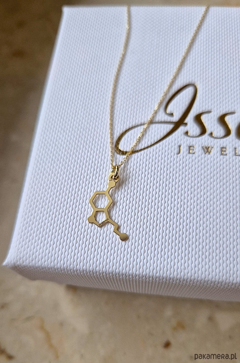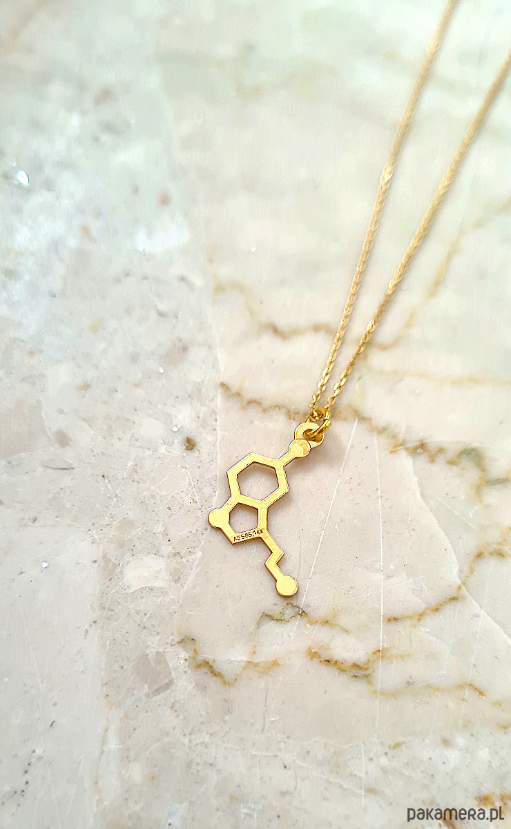 Naszyjnik z kolekcji CHEMISTRY, wykonany ze srebra próby 925 , srebra pokrytego dwoma warstwami 24-karatowego złota lub różowym złotem. Dostępny również w wersji ze złota próby 585 pokrytego dodatkowo warstwą 14 karatowego złota.