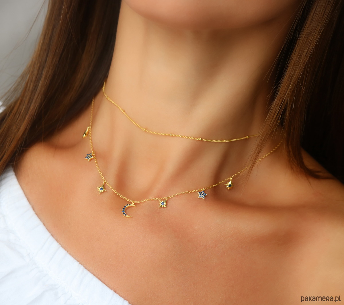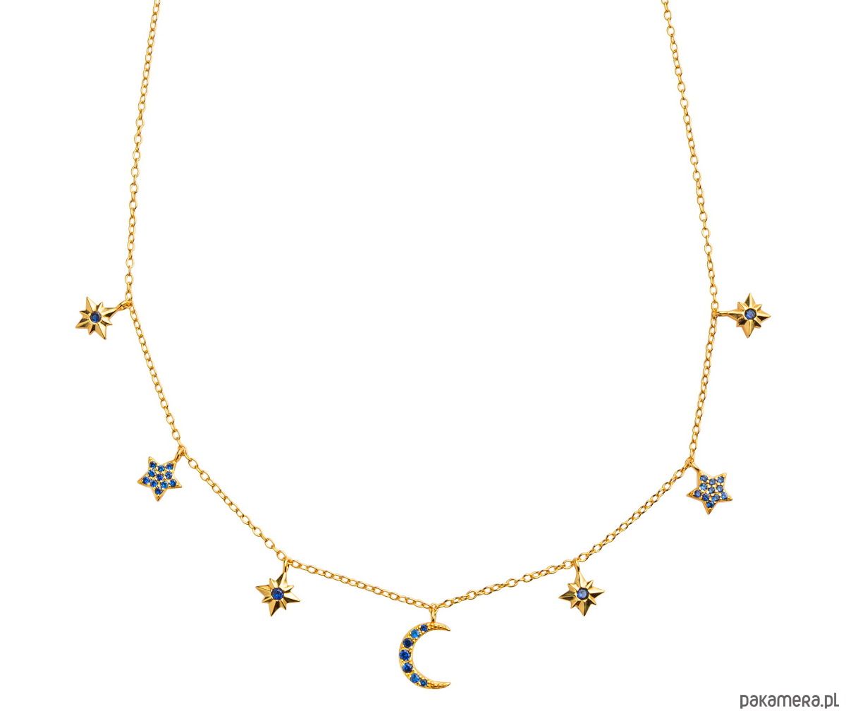 Choker - łańcuszek z cyrkoniami szafirowymi- srebro 925 pozłacane: