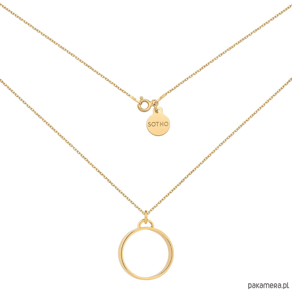 Złoty naszyjnik łańcuszkowy z grubą obręczą i zawieszką z logo marki. Całość wykonana ze srebra 925 powlekanego 24 karatowym żółtym złotem.