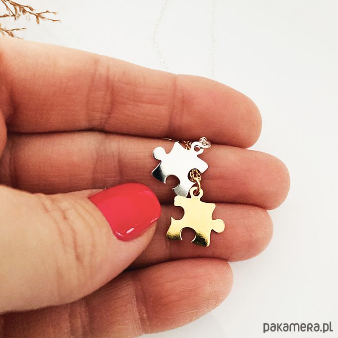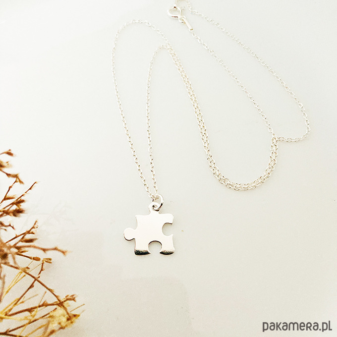 Delikatny naszyjnik z zawieszką w kształcie puzzle. Idealny prezent dla miłośnika układanek :)