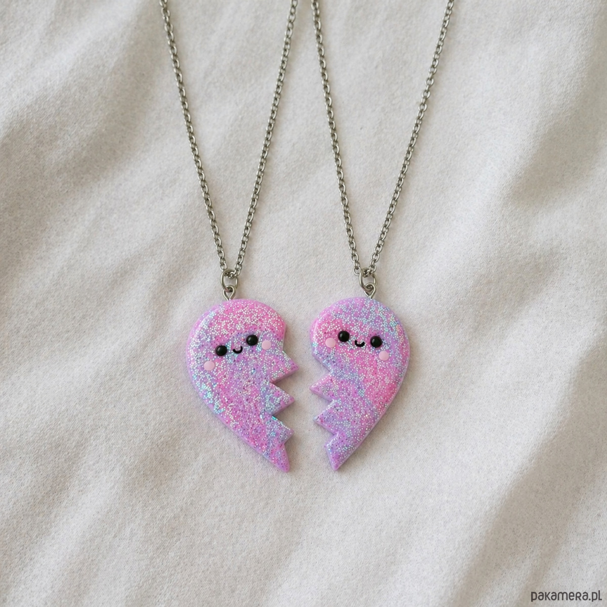 Naszyjniki Przyjaźni Brokatowe Serduszko