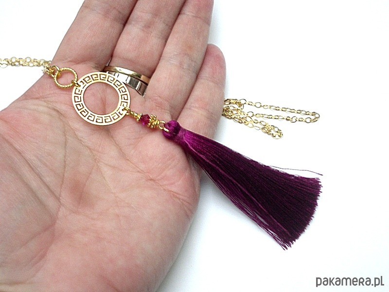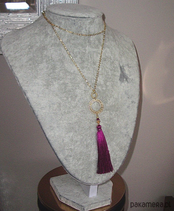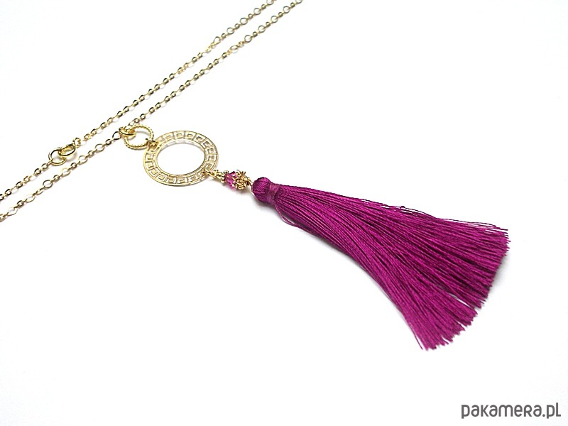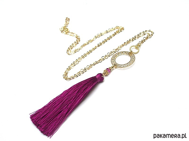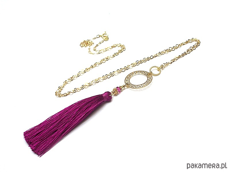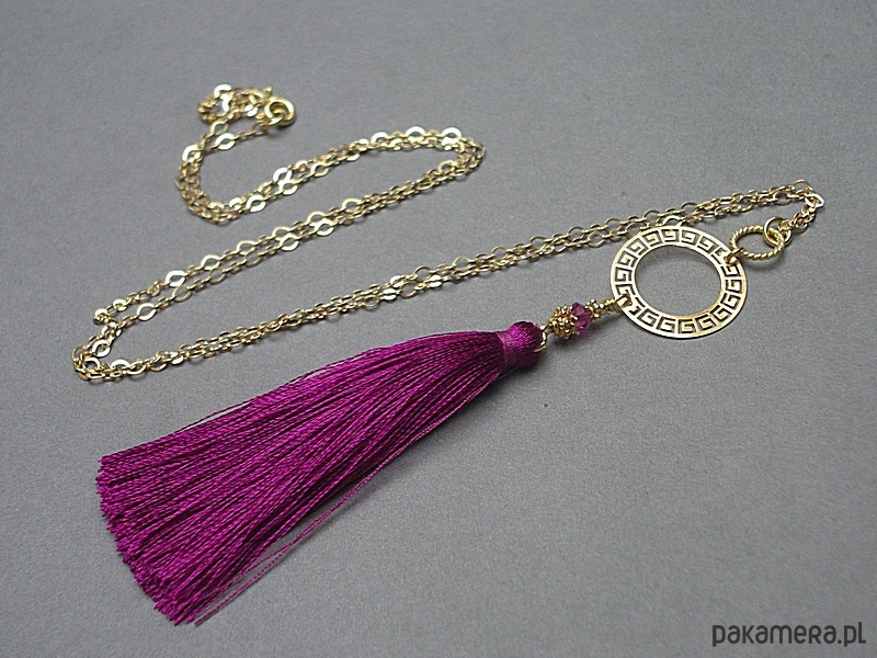 Naszyjnik wykonany ze srebra pokrytego 24k złotem [pr. 925] w połączeniu z kryształkiem Swarovski [4mm], złoconą rozetą [20mm] oraz chwostem. Całkowita długość naszyjnika 67,5cm. Biżuteria ozdobnie zapakowana.