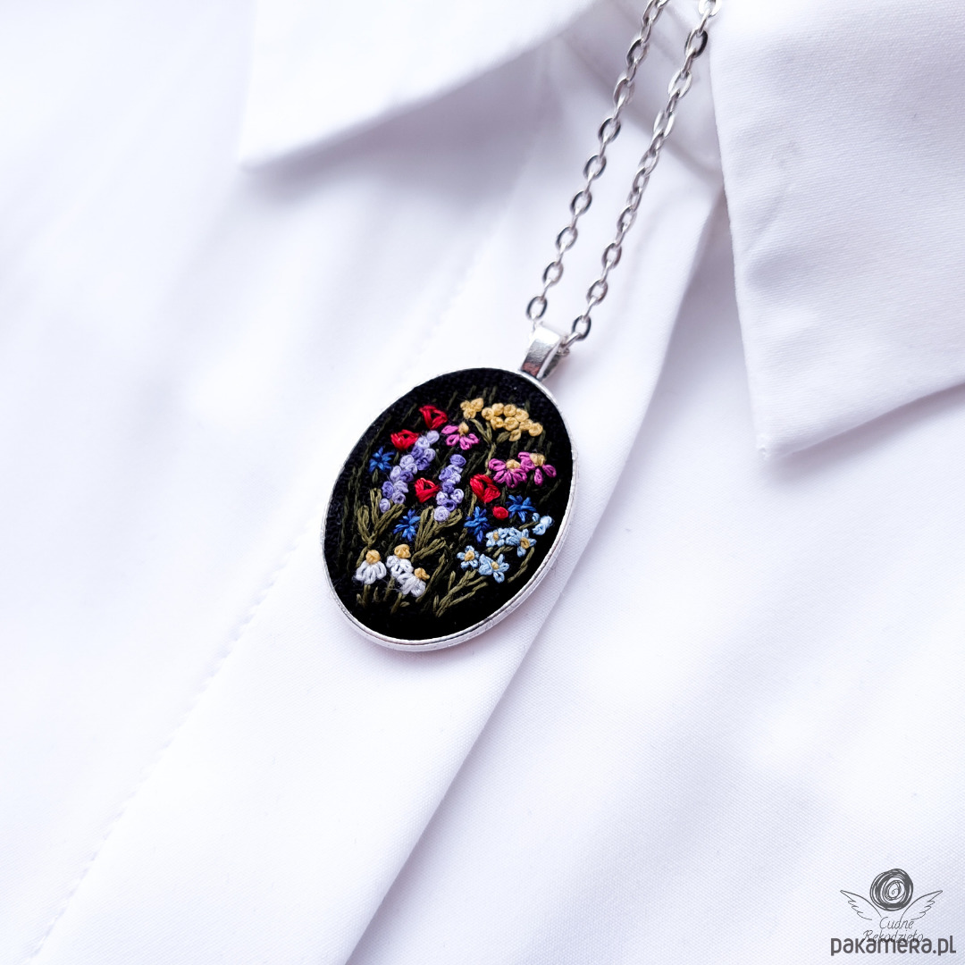 Ręcznie haftowany medalion ze wspaniałą kolorową kwietną łąką ❤️