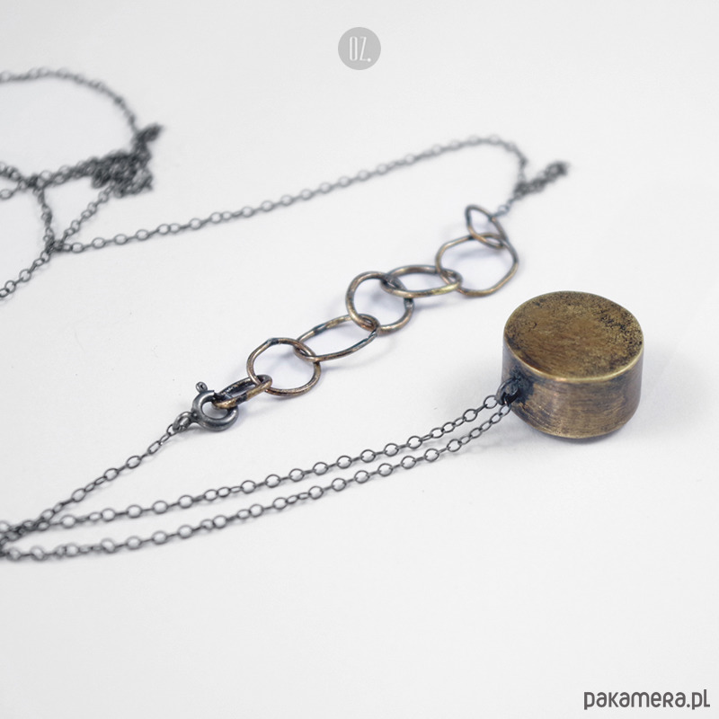 Naszyjnik wykonany ręcznie ze srebra i mosiądzu, oksydowany.