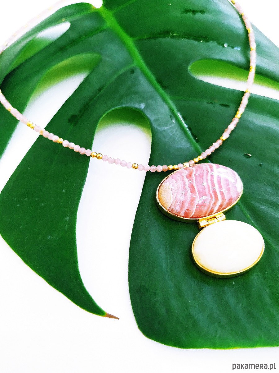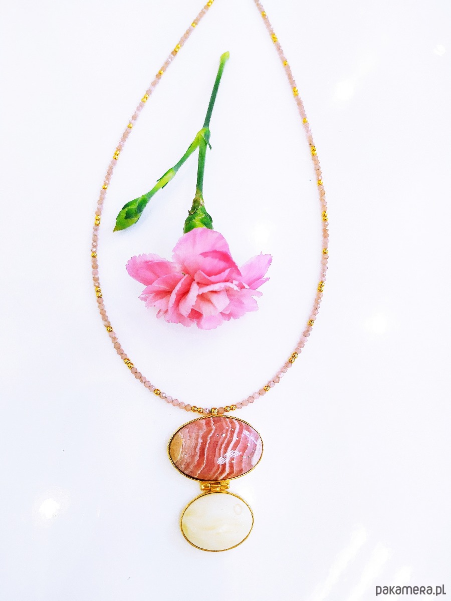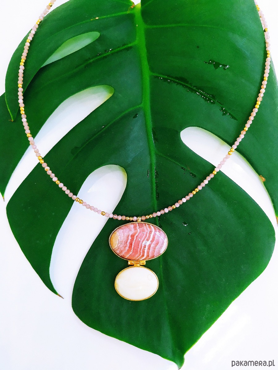 Naszyjnik Kamień Naturalny - Bursztyn,Rodochrozyt