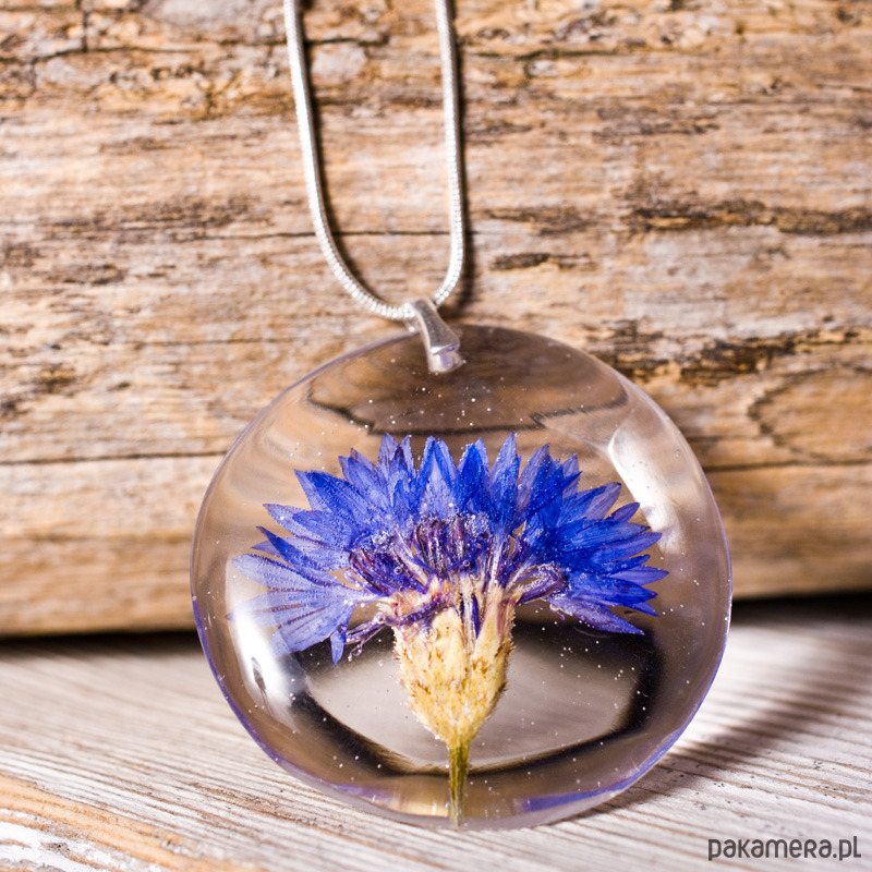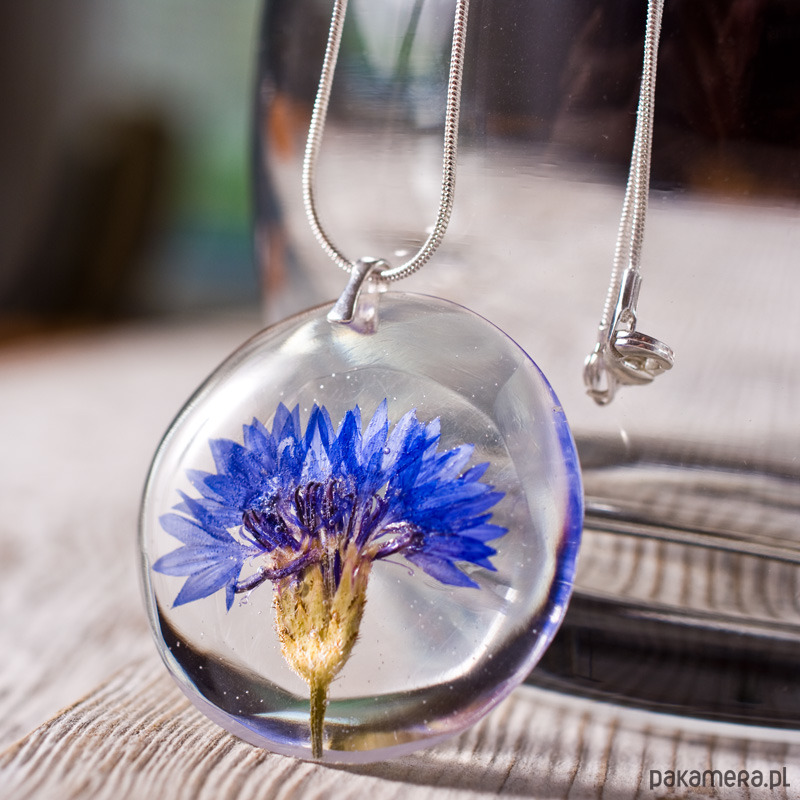 Naturalny chaber zatopiony w krystalicznej żywicy, oprawionej w srebro 925, tworzą przepiękny i niepowtarzalny naszyjnik. Produkt jest lekki i elegancki. Nasza biżuteria oparta jest na autorskich projektach i formach. Naszyjnik wykonany w całości ręcznie, szlifowany i polerowany indywidualnie. Zdjęcie przedstawia oferowany produkt. Wymiary: wisiorek:(nieregularne koło)średnica 44 mm, łańcuszek: 60 cm. Materiały: żywica, srebro, kwiaty.