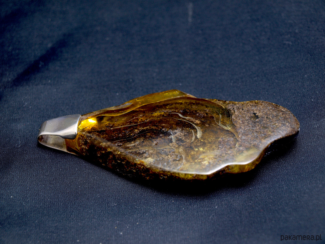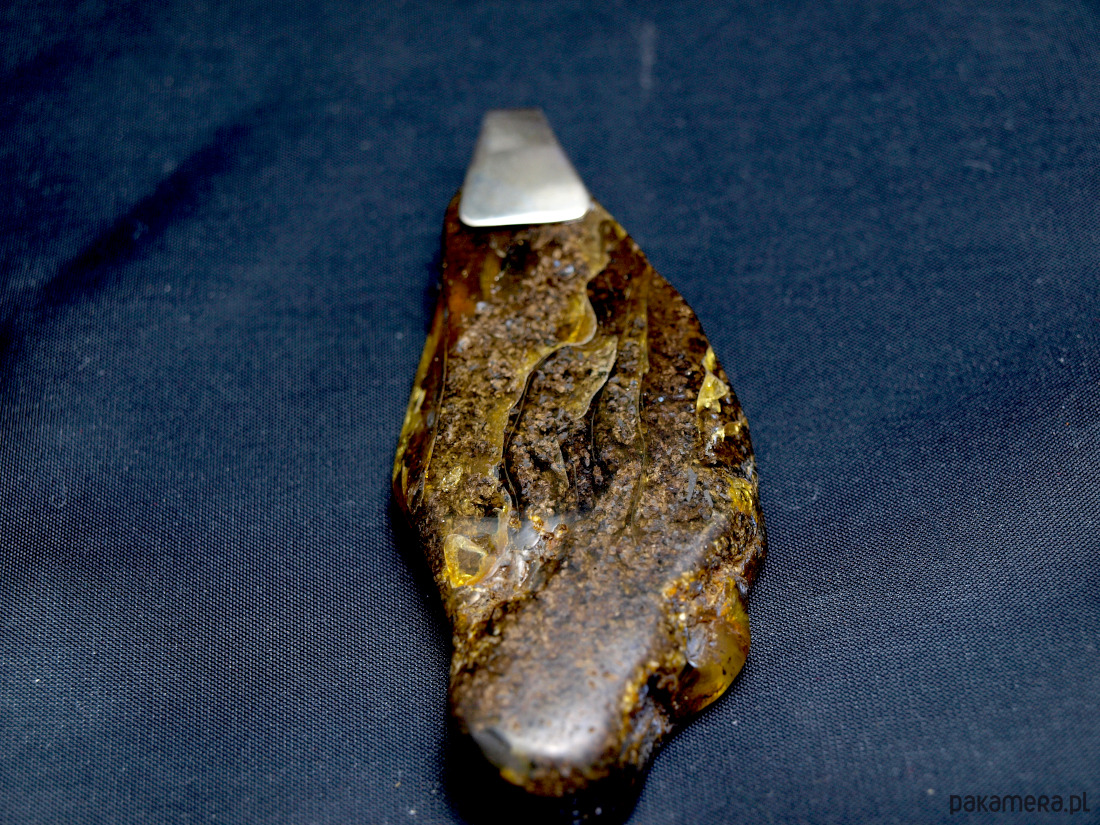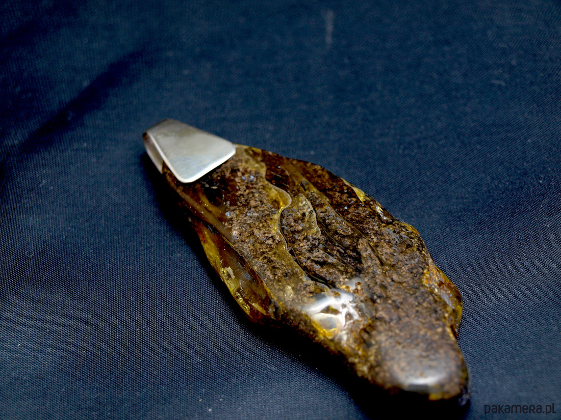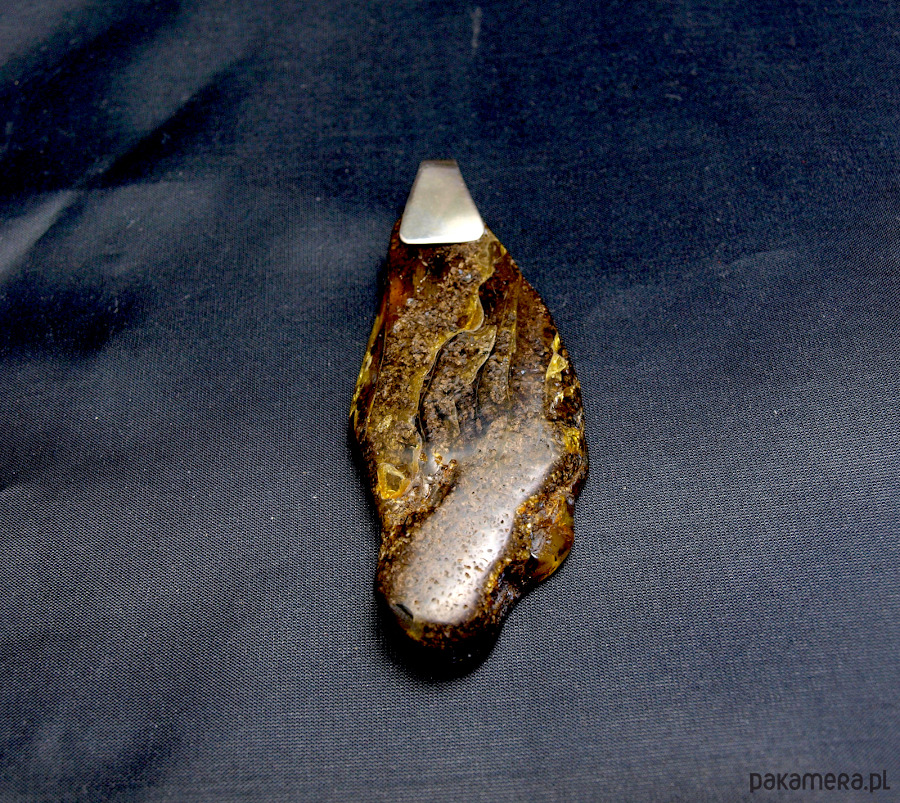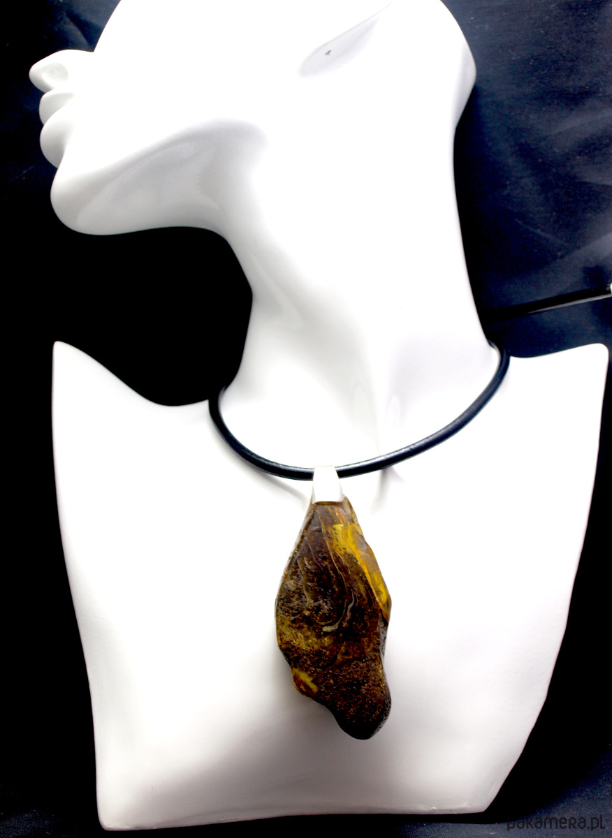 Wisiorek skład się z jednego kawałka bursztynu w brązowym odcieniu. Wisiorek posiada zawieszkę o rozmiarze pasującym do łańcuszka lub skórzanego rzemyka. Posiadamy rzemyki skórzane w cenie 50 zł za sztukę.