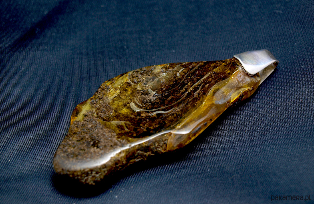 Ręcznie wykonany wisiorek ze srebra próby 925 i polskiego bursztynu.
