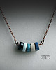 Efektowny ceramiczny naszyjnik, ręcznie wykonany z mocno spieczonej czekoladowobrązowej gliny kamionkowej, szkliwiony mieszanką subtelnie błyszczących błękitnych i szarych szkliw, zawieszony na łańcuszku miedzi. Średnica elementu ceramicznego około 12mm, obwód łańcuszka ok 44cm (plus 10cm łańcuszka regulacyjnego). Polecam. Termin realizacji zamówienia to 3-6 dni.