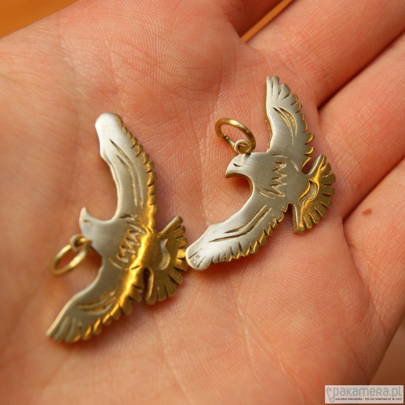Komplet wisiorków - turkawki z mosiądzu (kolor złoty) Turkawka - symbol przyjażni. W komplecie otrzymujesz 2 szt turkawek - zgodnie z tradycją jedną turkawkę zostawia się sobie, a drugą daruje bliskiej osobie Turkawki zostały narysowane według kształtu turkawki z filmu "Kevin sam w Nowym Jorku". Następnie zostały zaprojektowanie w programie 3D, wydrukowane w wosku oraz odlane z mosiądzu. Ręcznie polerowane Autor wzoru: Magdalena Marszalik ( włąscicielka sklepu She). Ich wielkość to: 34 mm szerokości i 2,4 długości wraz z kółeczkiem.