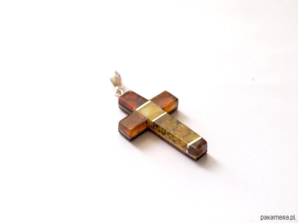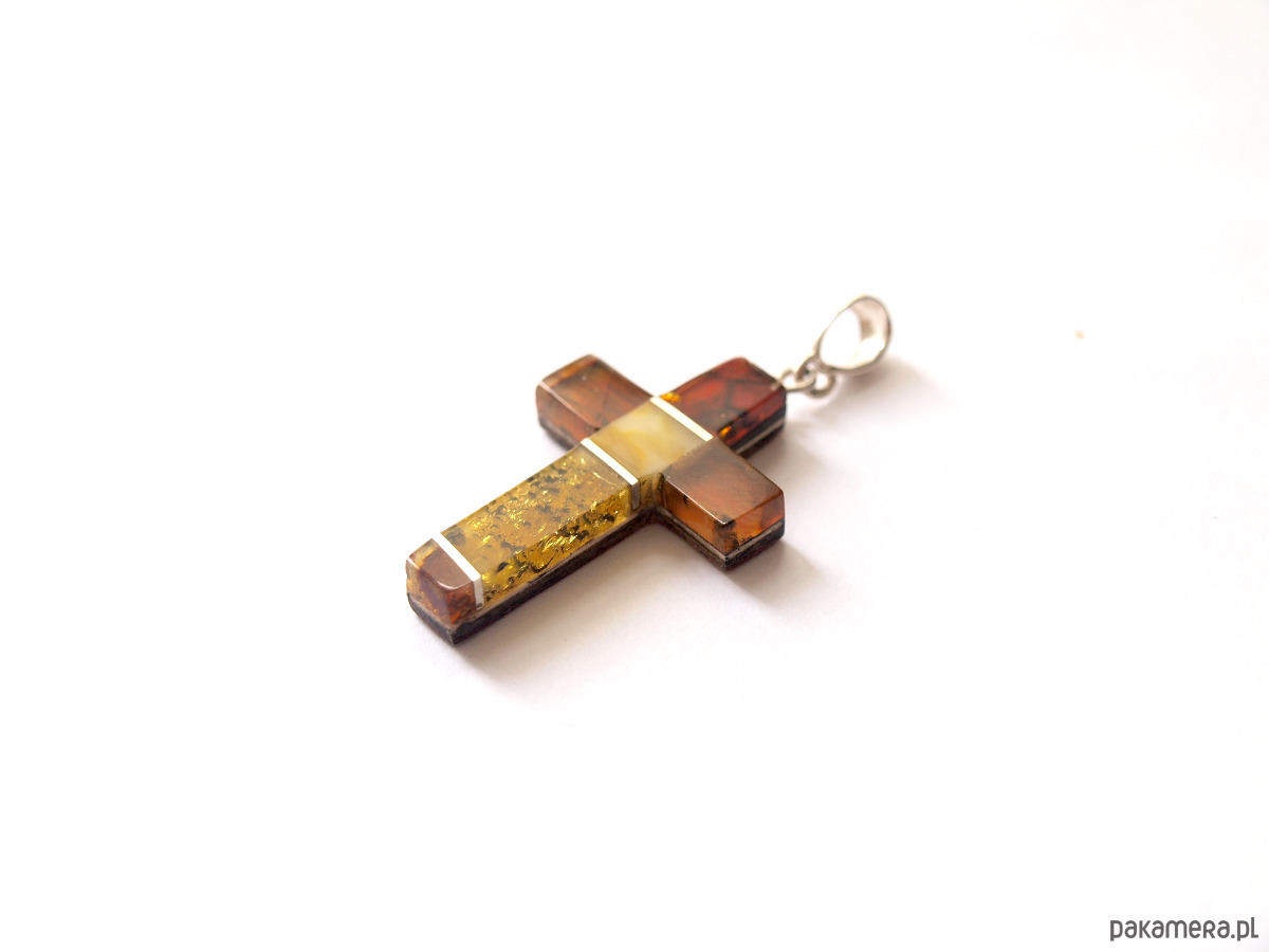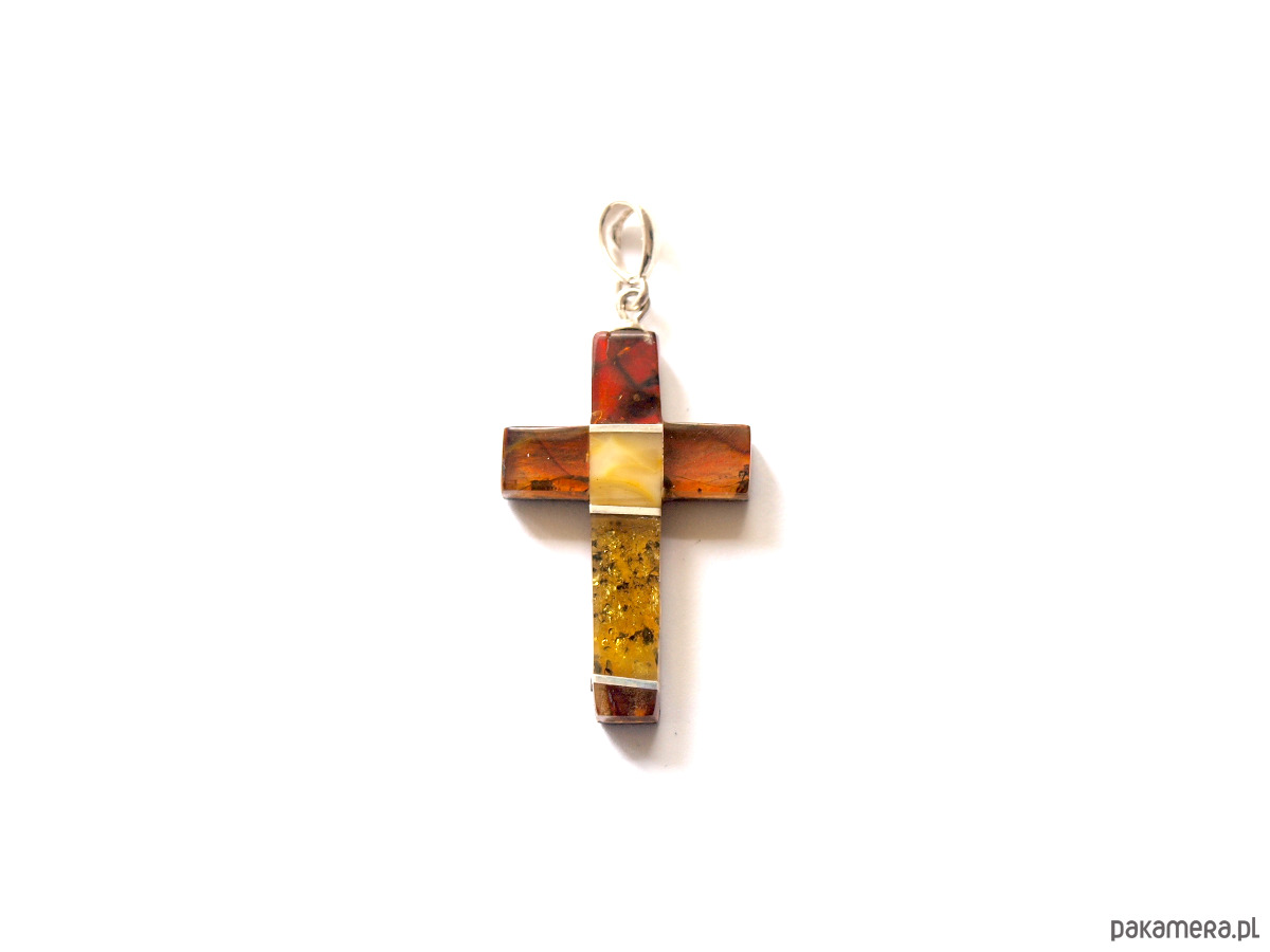 Ręcznie wykonany wisiorek ze srebra próby 925 i polskiego bursztynu.
