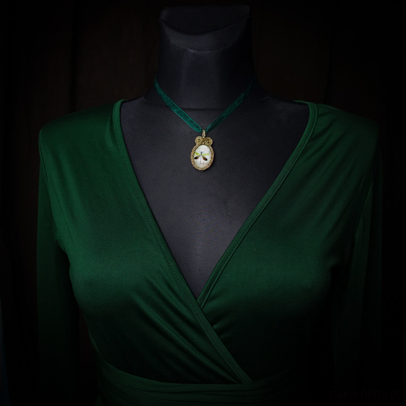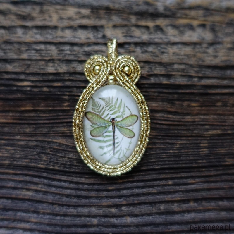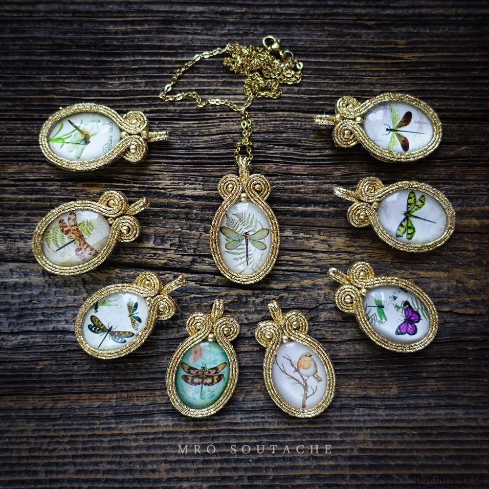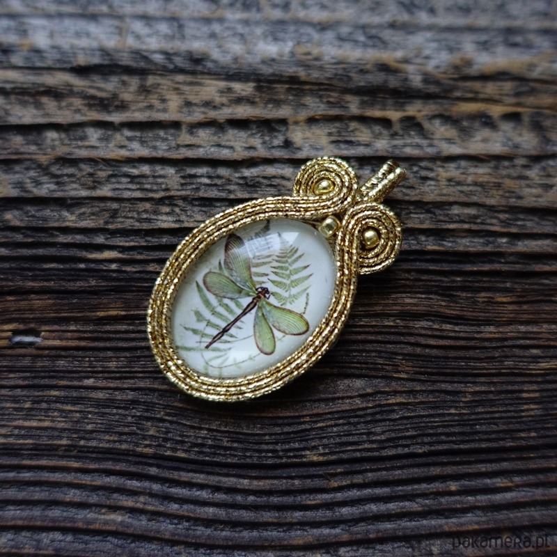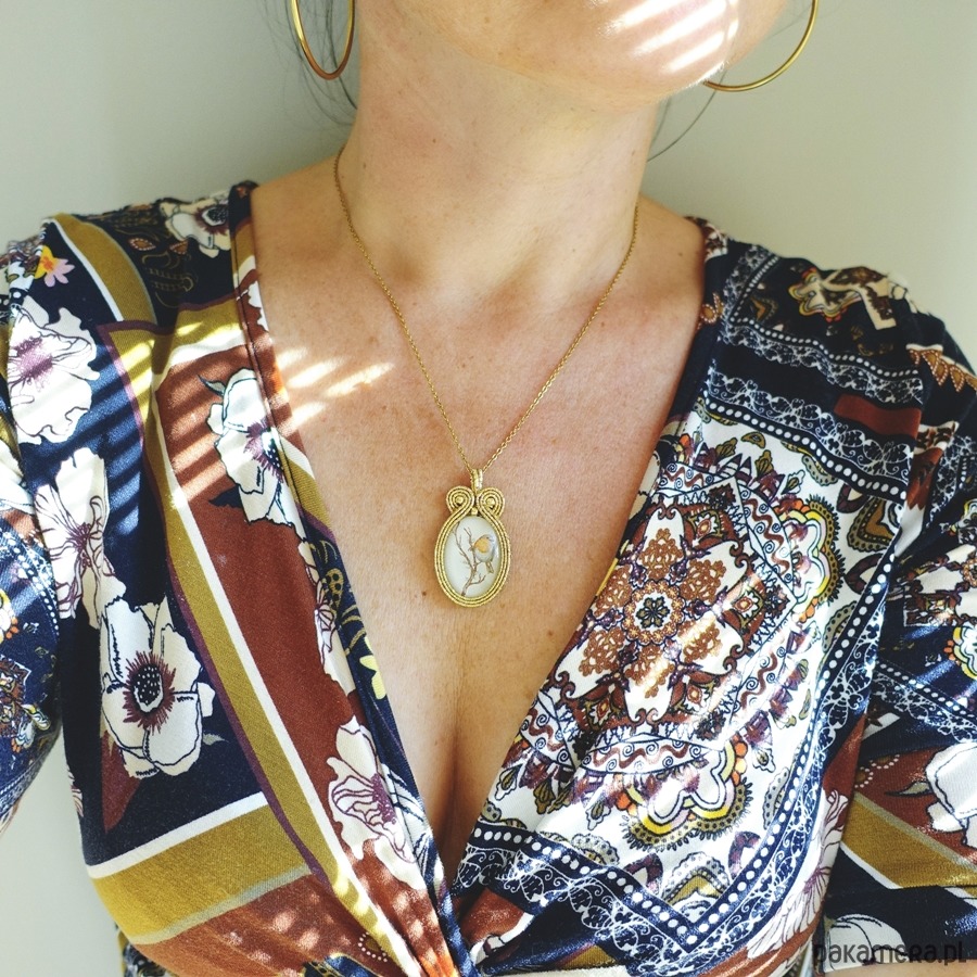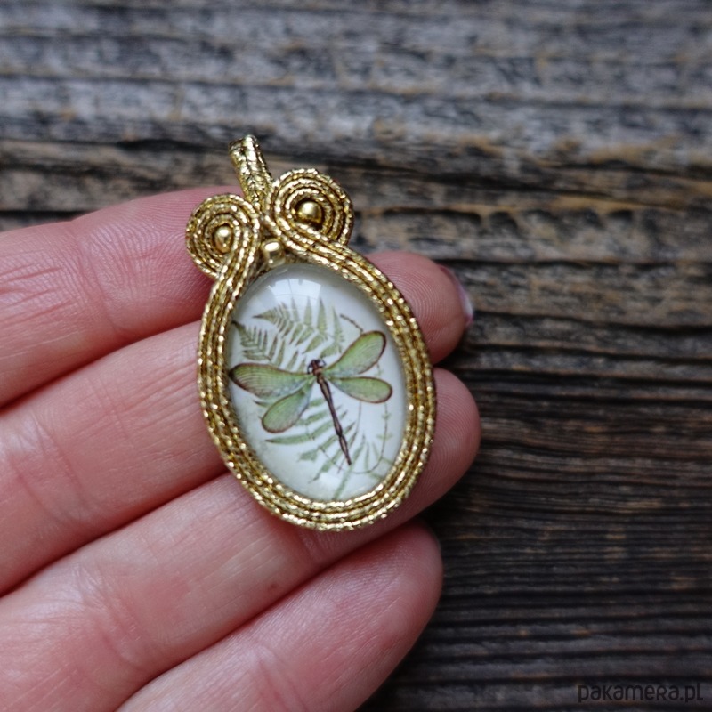Wisiorek wykonany metodą haftu soutache.