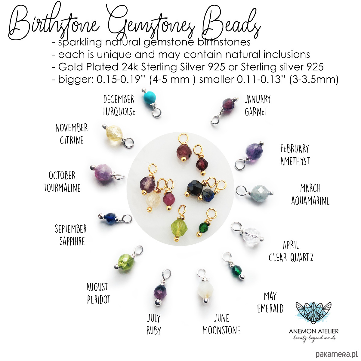 Wybierz jeden dla siebie – powstanie z kamienia, który najbardziej do Ciebie przemawia (wszystkie dostępne kamienie pokazane są na zdjęciu).