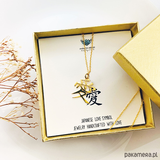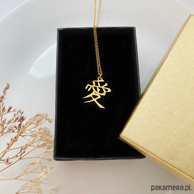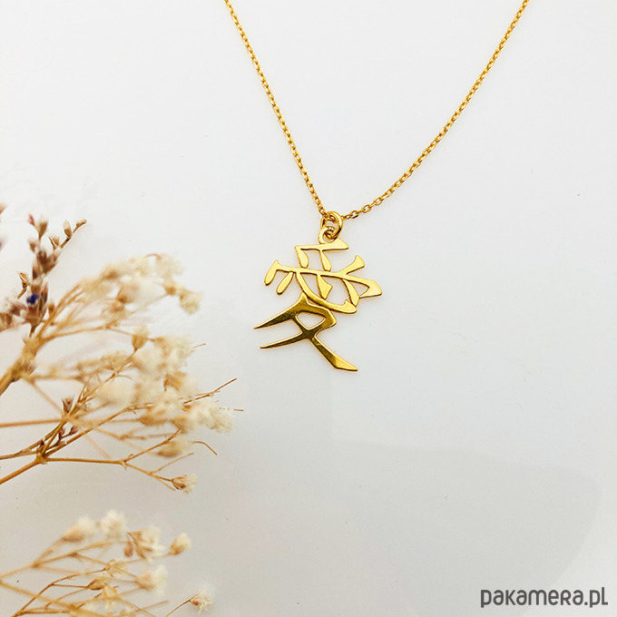 Delikatny naszyjnik z pięknym geometrycznym elementem w kształcie japońskiego znaku oznaczającego miłość .