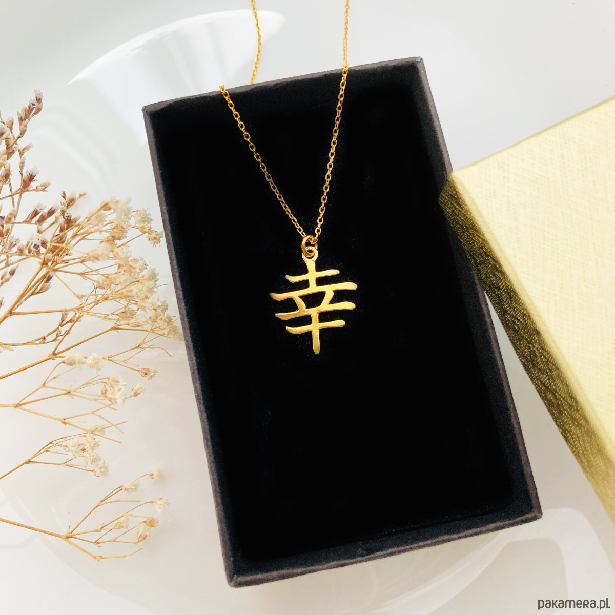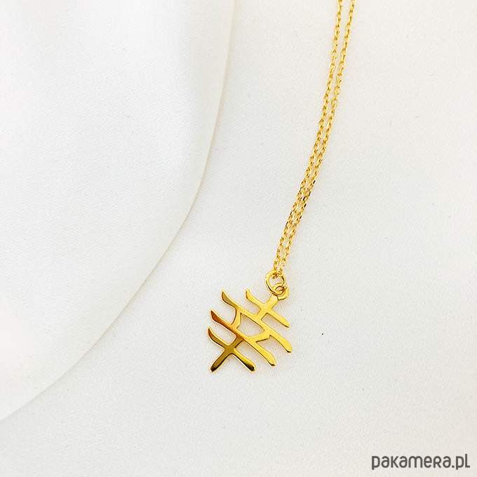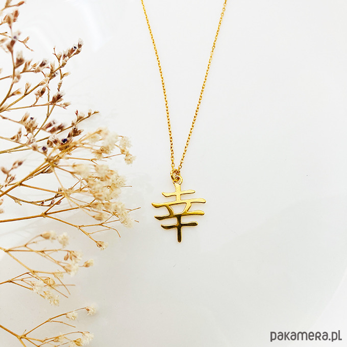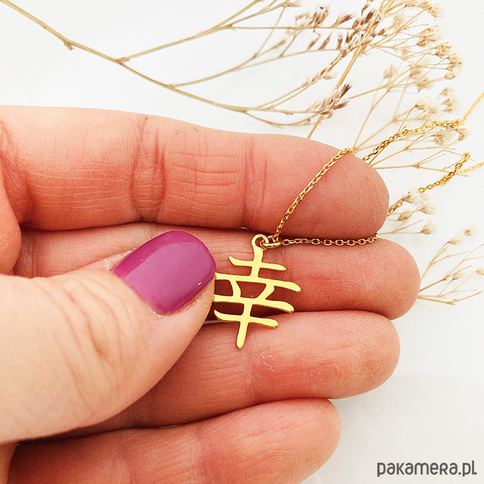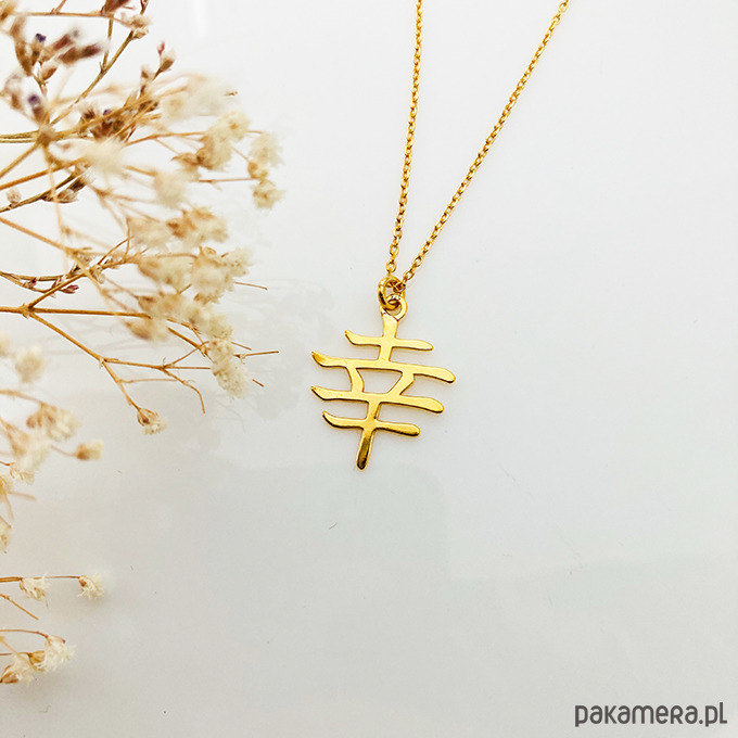 Delikatny naszyjnik z pięknym geometrycznym elementem w kształcie japońskiego znaku oznaczającego szczęście .