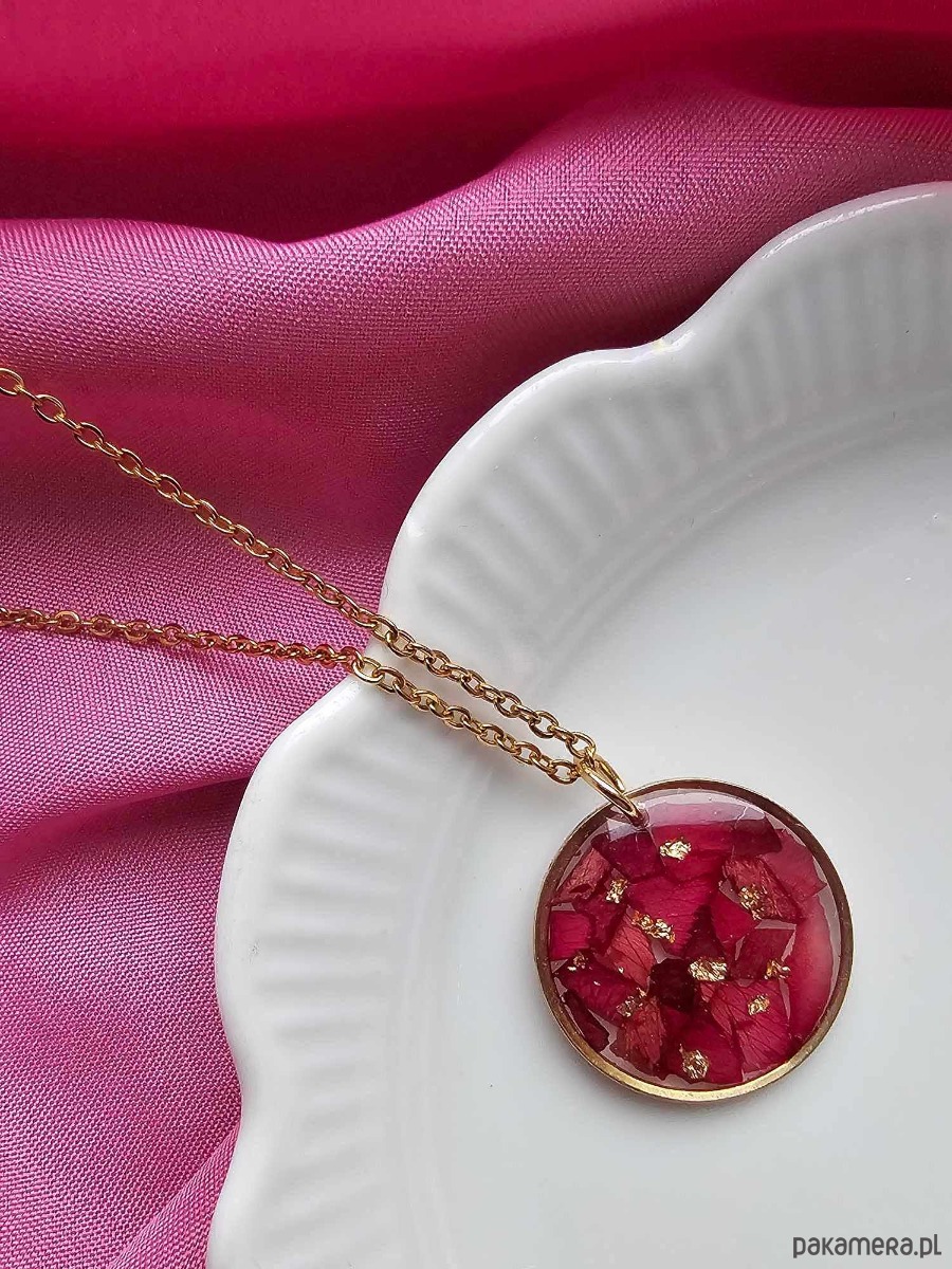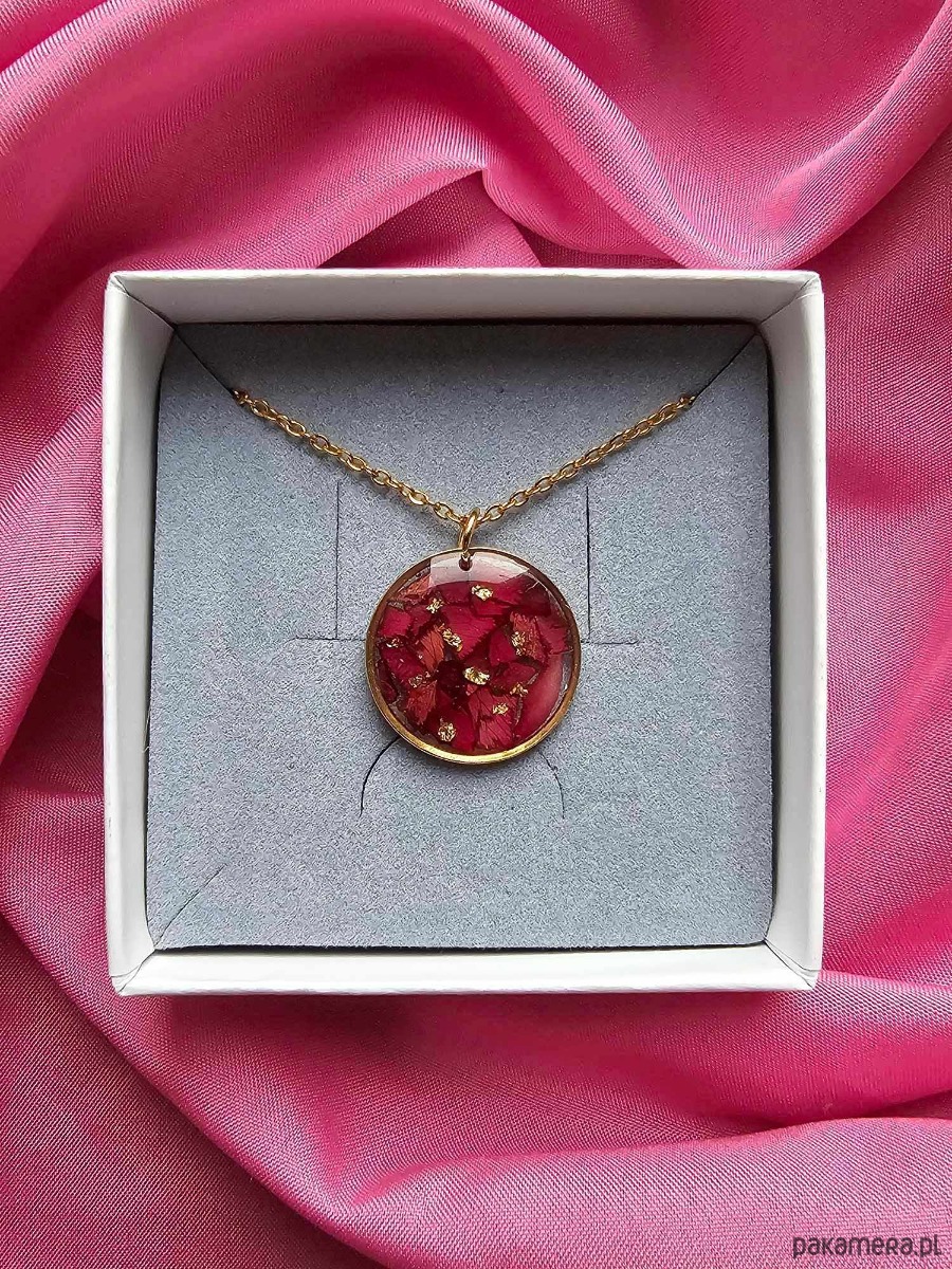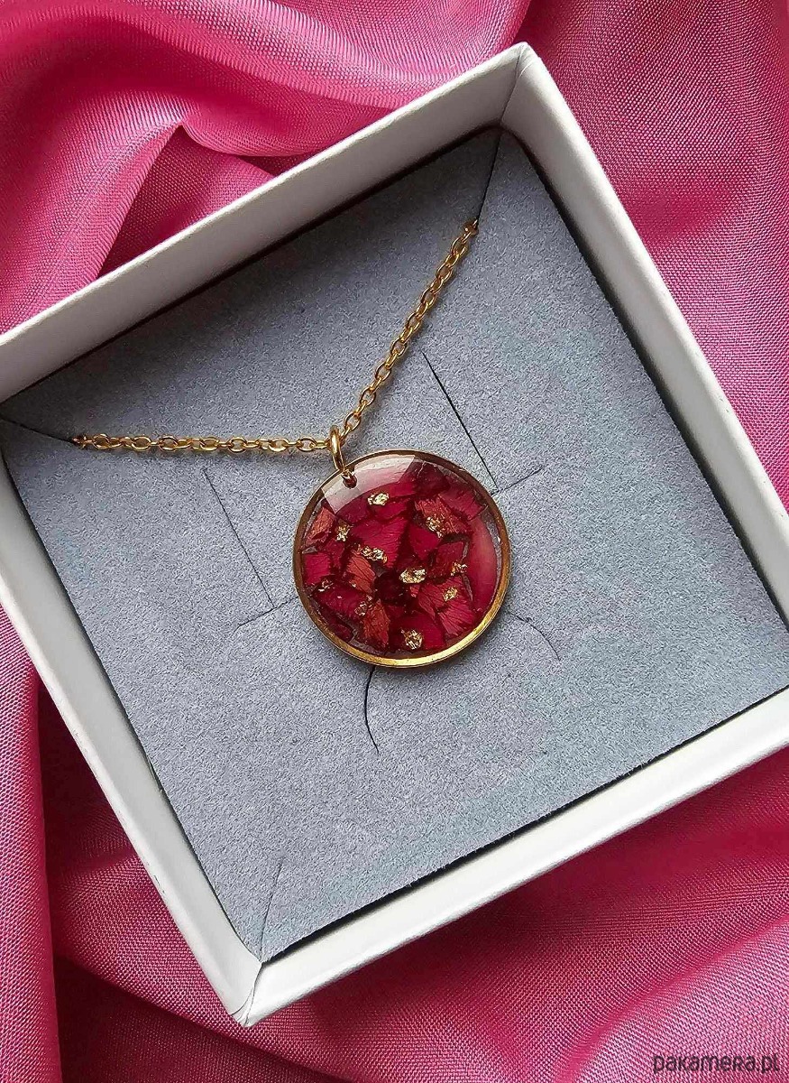 Naszyjnik z płatkami czerwonej róży to unikatowa, ręcznie wykonana biżuteria z serii Miłość.