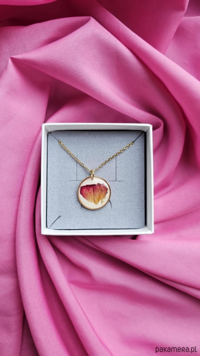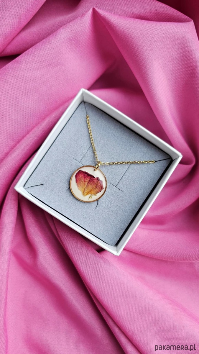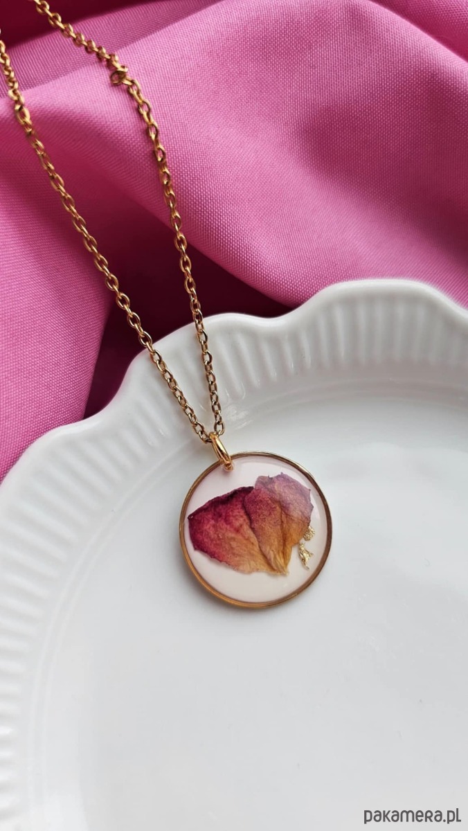 Naszyjnik z płatkami róży to unikatowa, ręcznie wykonana biżuteria z serii Miłość.