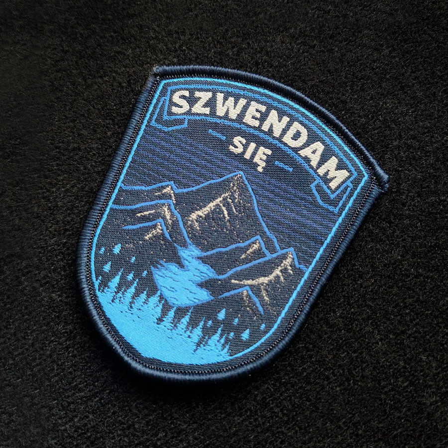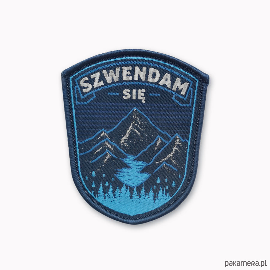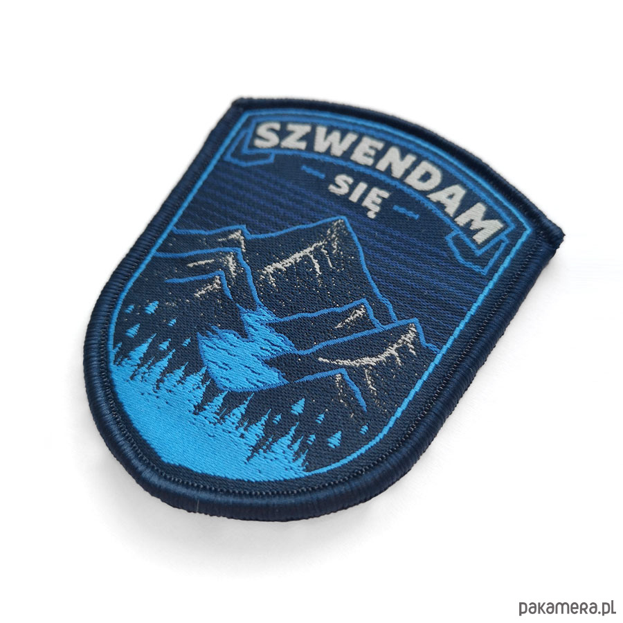 Naszywka w czarnym kolorze w kształcie tarczy z wyhaftowanym napisem Szwendam się oraz górskim pasmem. Pomiędzy szczytami znajduje się obszerna dolina z jeziorem polodowcowym oraz lasem iglastym w jej niższej części. Emblemat został wyposażony w jednostronny rzep, dzięki któremu w szybki i prosty sposób zaczepisz go np.: na plecak, nerkę, czapkę lub inny rodzaj odzieży z odpowiednim do tego panelem z rzepu miękkiego (tzw. pętelka). Wymiary naszywki: 7,5 x 6 cm.