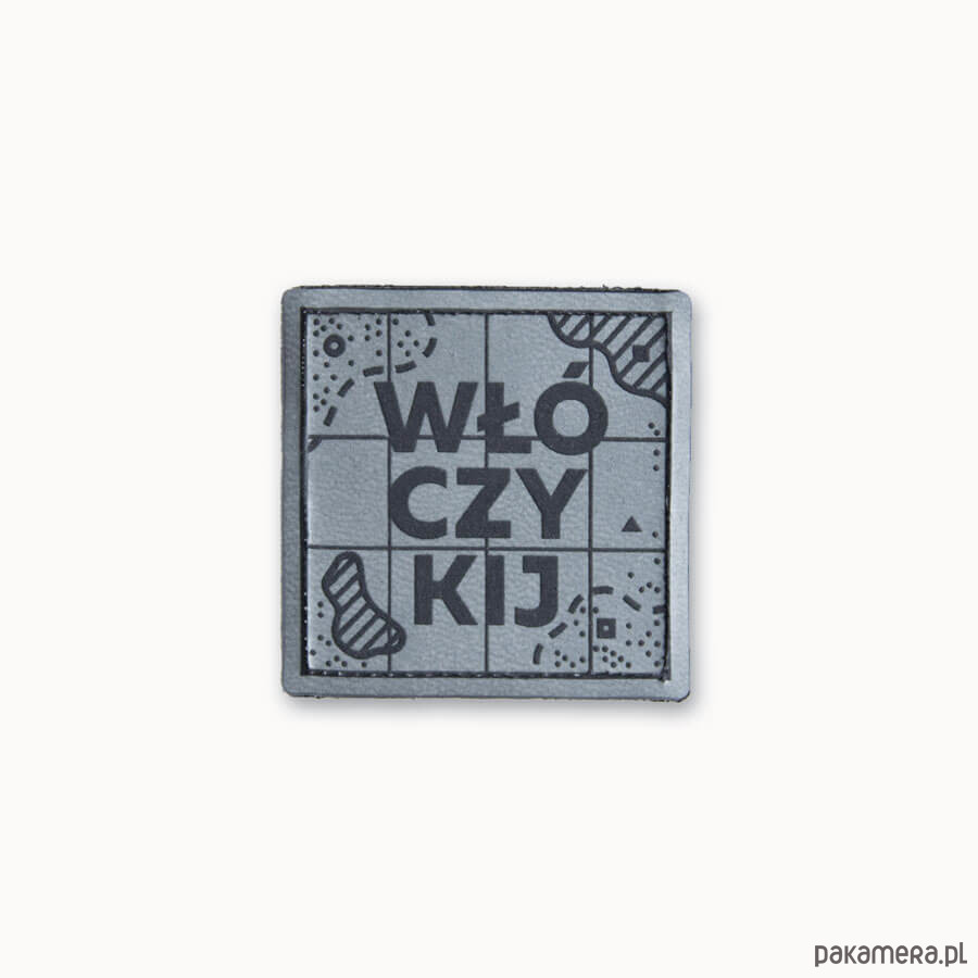 Kwadratowa naszywka z ekoskóry w szarym kolorze z napisem WŁÓCZYKIJ na tle mapy. Emblemat został wyposażony w jednostronny rzep, dzięki któremu w szybki i prosty sposób zaczepisz go np.: na plecak, nerkę, czapkę lub inny rodzaj odzieży z odpowiednim do tego panelem z rzepu miękkiego (tzw. pętelka). Wymiary naszywki: 4,9 x 4,9 cm.