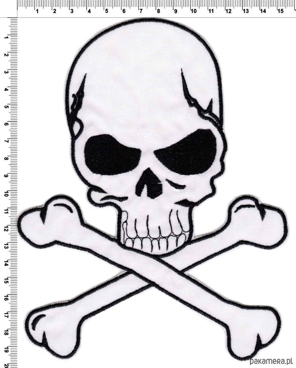 Naszywka naprasowanka CZASZKA BIAŁA termo haft 20x15,5cm duża