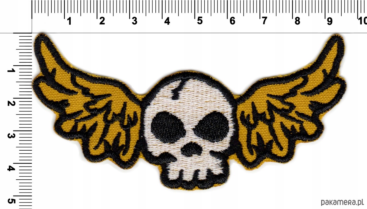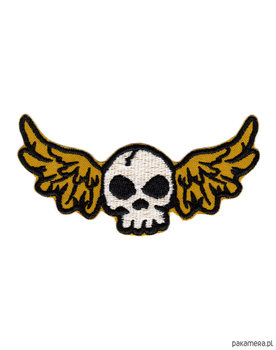 Naszywka naprasowanka CZASZKA ZE SKRZYDŁAMI termo haft 9,7x4,8cm