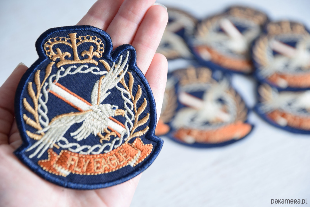 Naszywka naprasowanka FLY EAGLE BEŻOWA termoprzylepna haft 8x9,3cm::