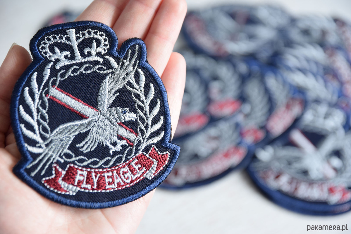 Wykonana z wysokiej jakości haftu, naszywka wyróżnia się trwałością i precyzją. Granatowe tło w połączeniu z szarym wizerunkiem orła oraz czerwonym napisem tworzy harmonijną całość, która zachwyca. Starannie dobrane kolory zapewniają odporność na blaknięcie, dzięki czemu naszywka zachowa swój wygląd na długo, nawet po wielu praniach.